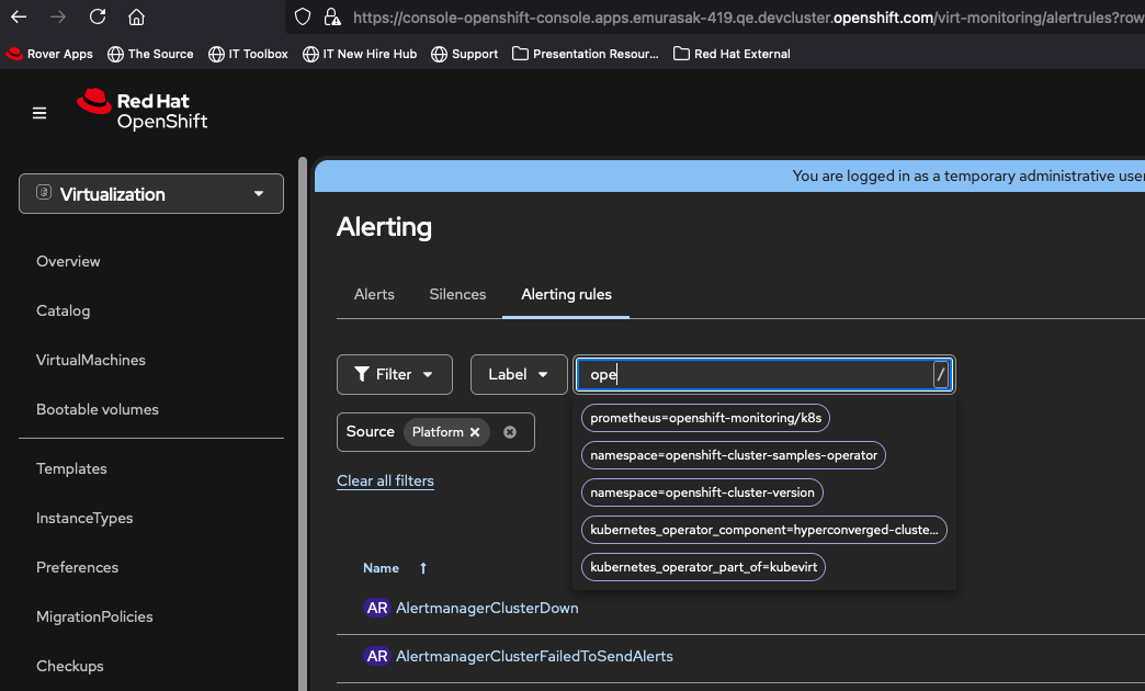 - Install OpenShift Virtualization