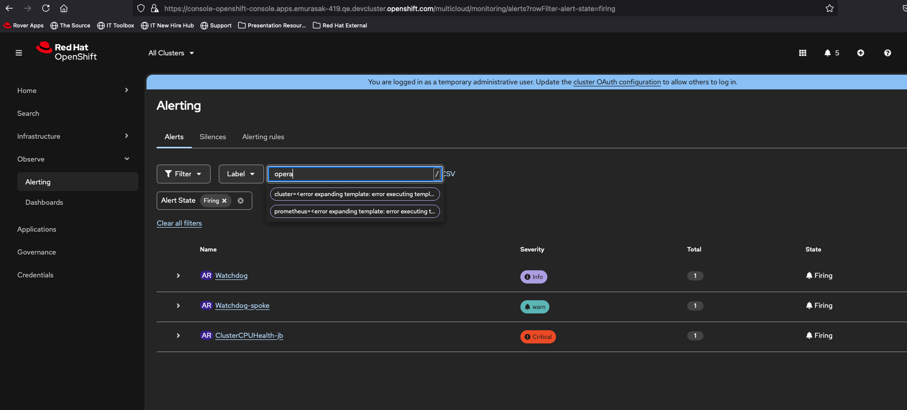 - Observe > Alerting > Alerts