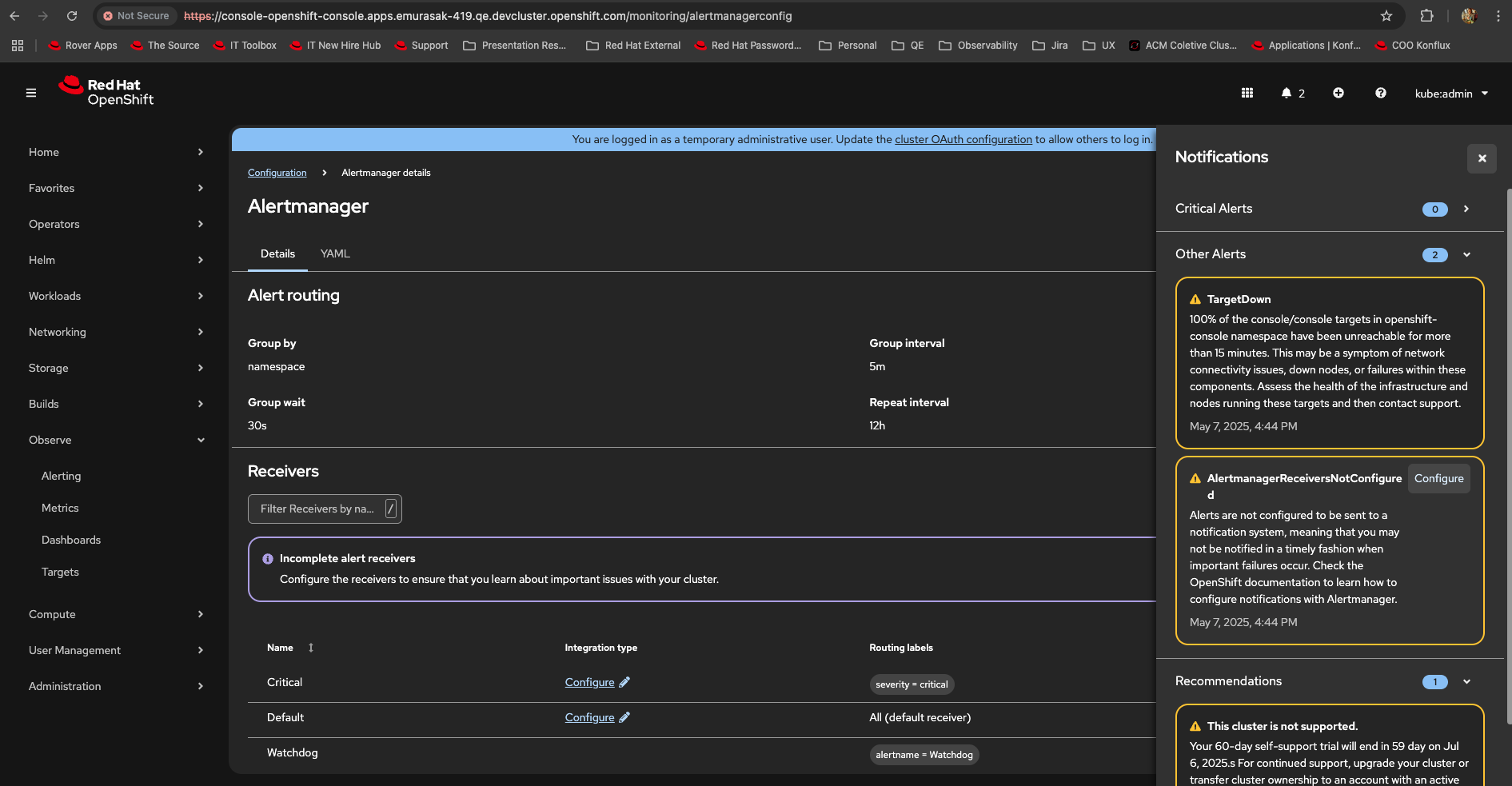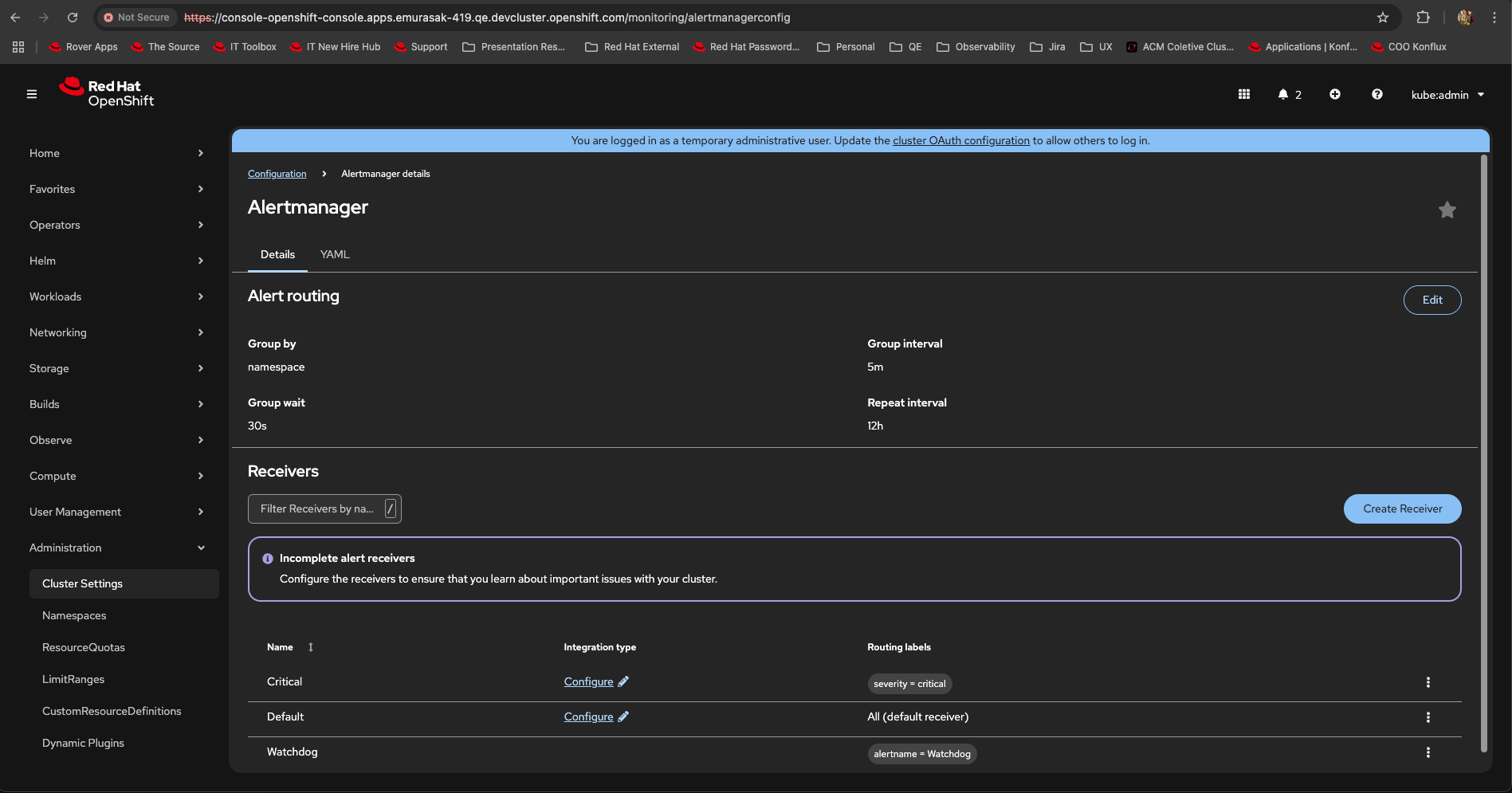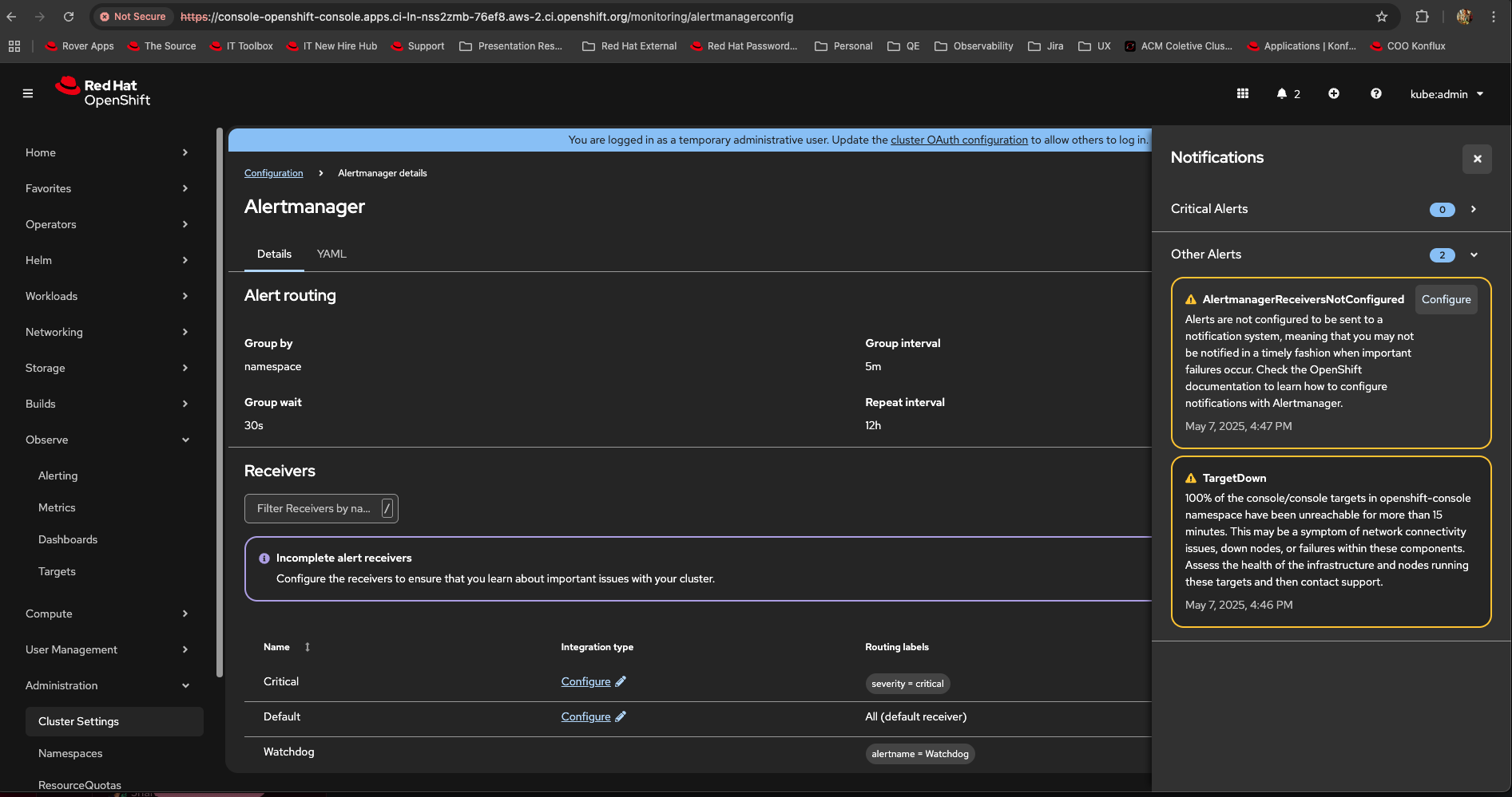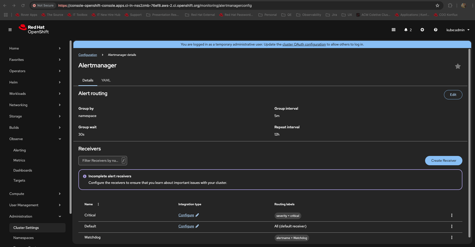 - on 4.19, go to "<cluster-console-url>/monitoring/alertmanagerconfig"