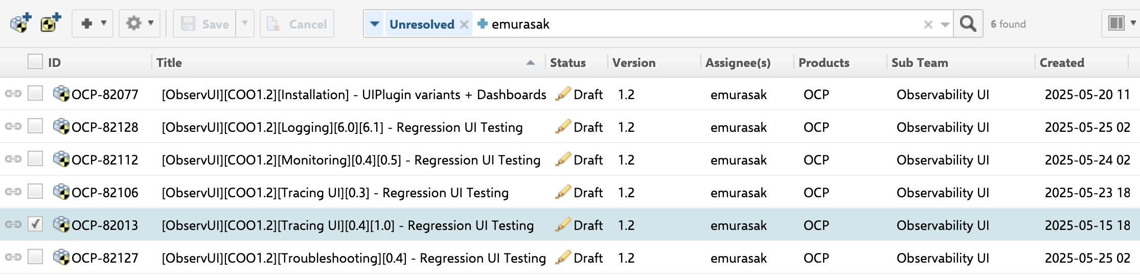 https://polarion.engineering.redhat.com/polarion/#/project/OSE/workitems/testcase?query=NOT%20HAS_VALUE%3Aresolution%20AND%20(emurasak)