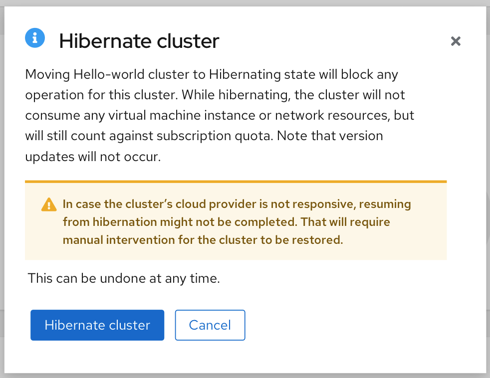 Users may want to temporarily hibernate a cluster to save on the costs of running it.