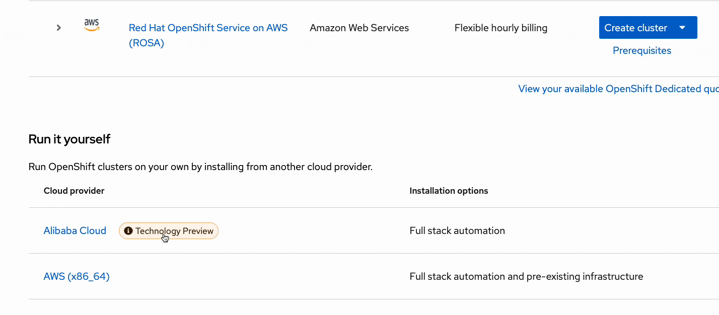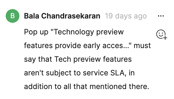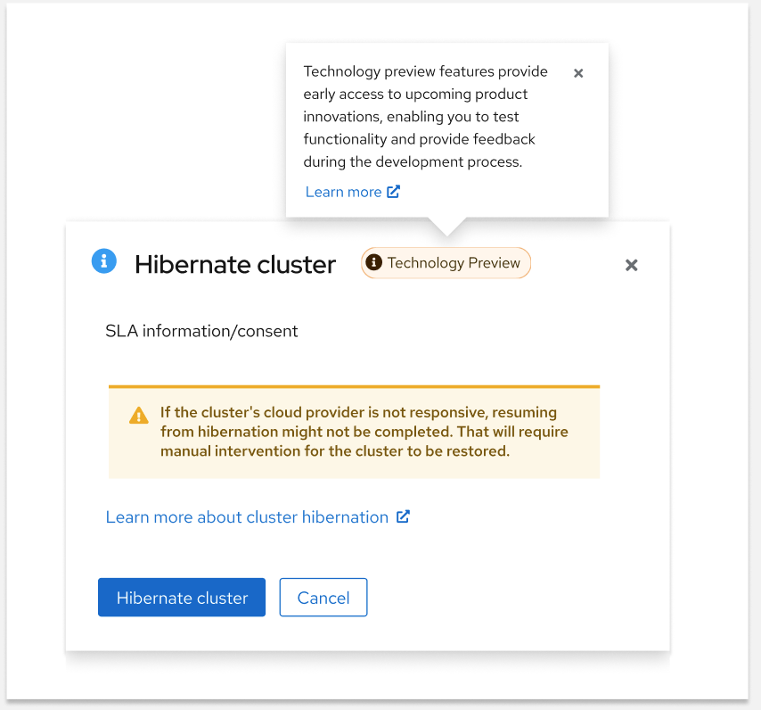 - Because this feature is Tech preview, the user should be warned of what the implications of that is, including limited support.