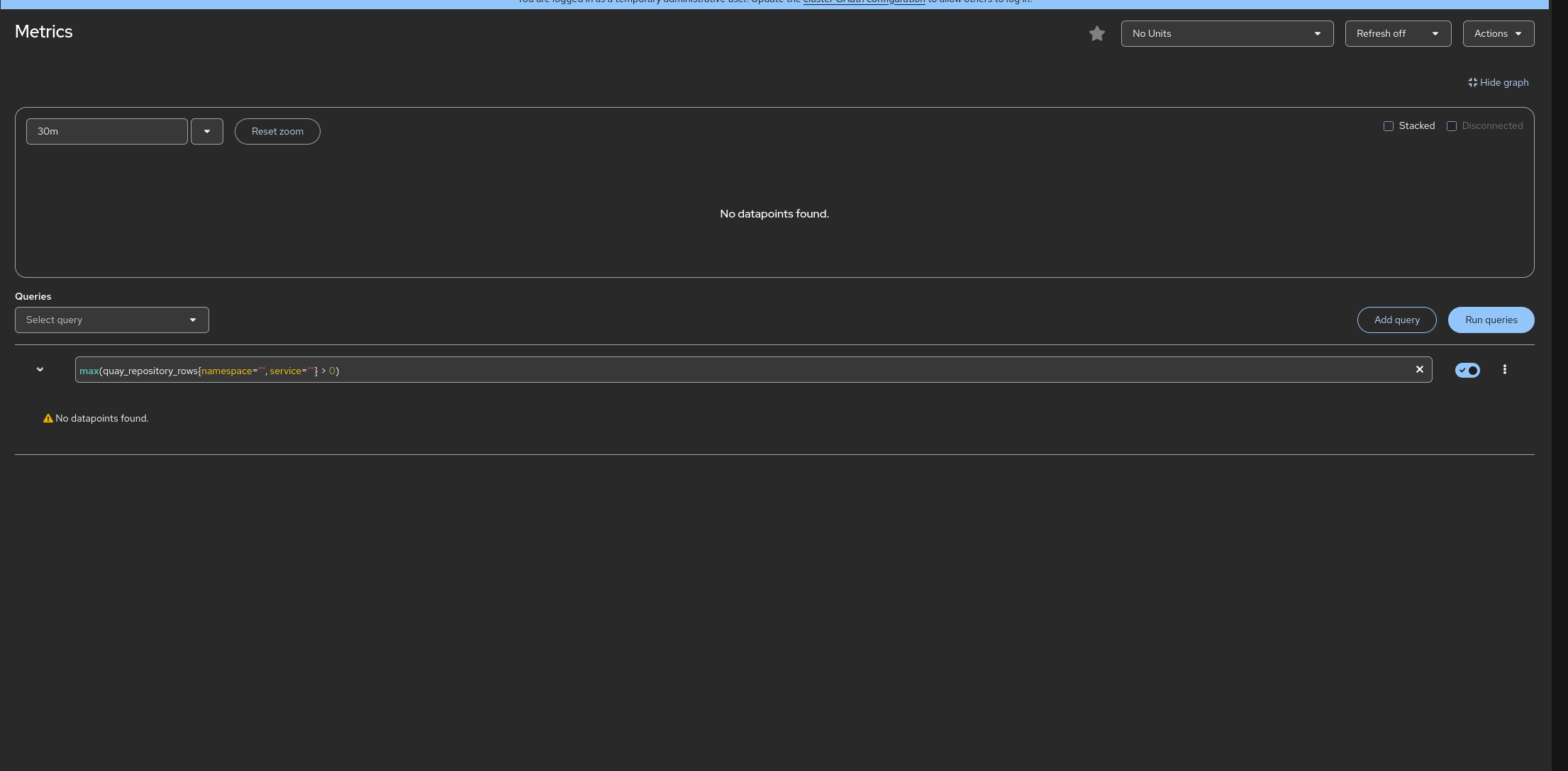 Quay default OCP Metrics Dashboard can't display Quay metrics: