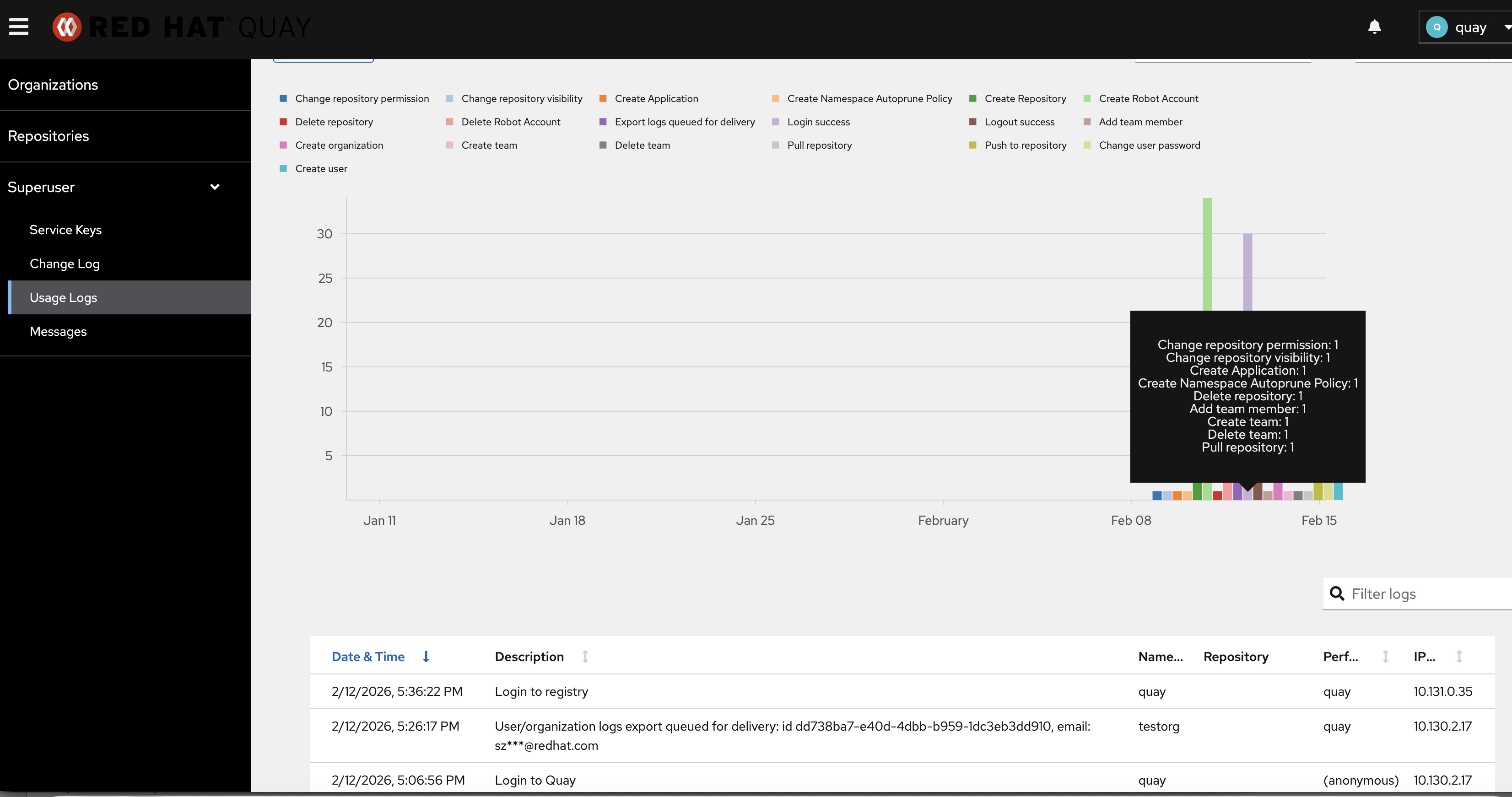 3. Navigate to any Usage Logs page (Superuser, Organization, or Repository level)