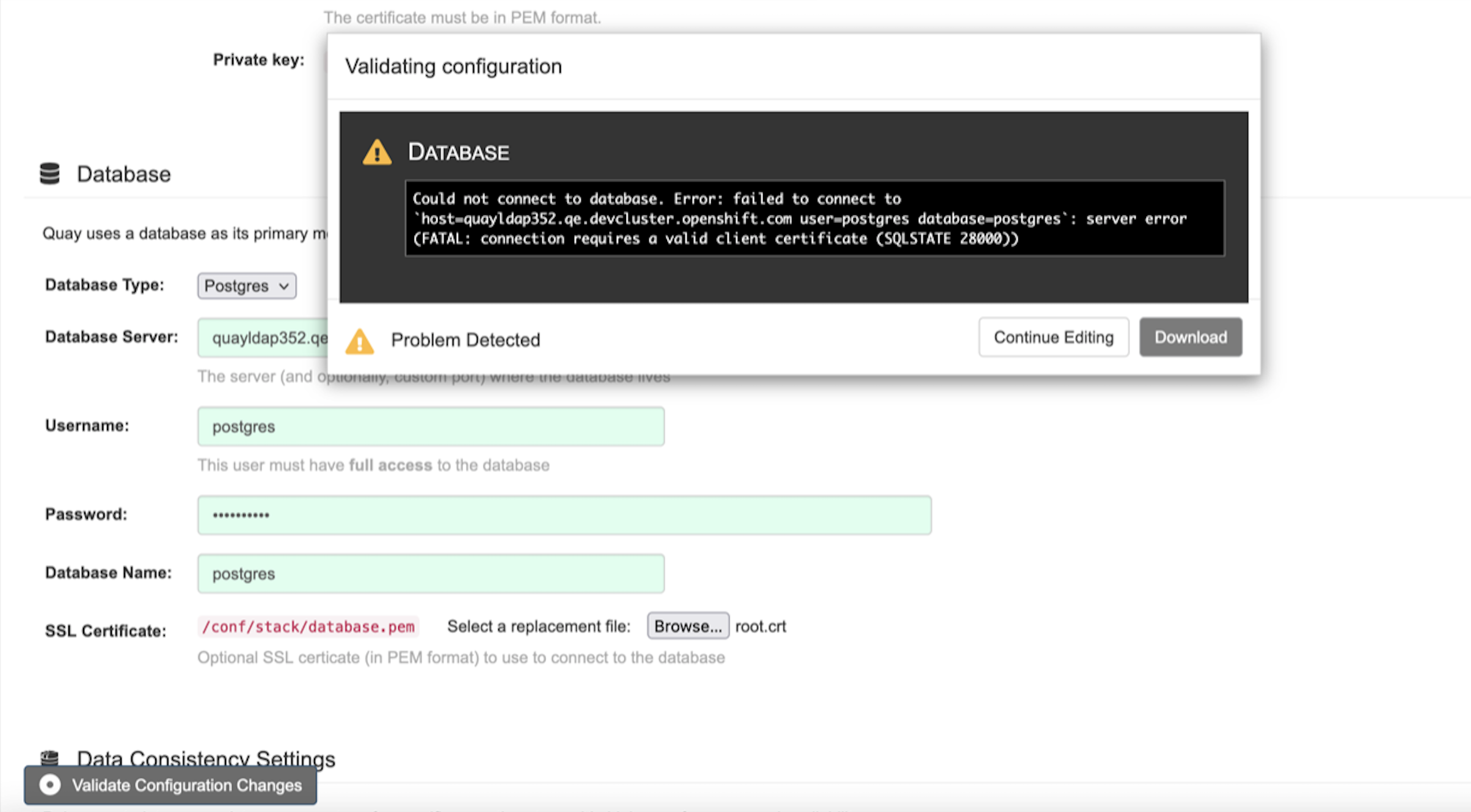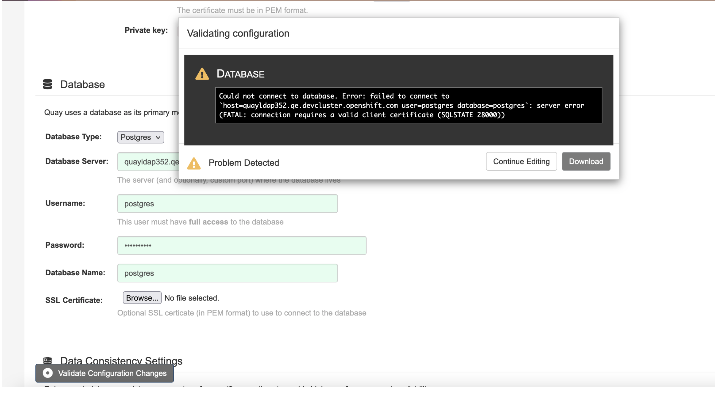 PROJQUAY-2239 VERIFY: Quay doesn't support Crunchy Postgresql 13 with sslmode=verify-ca