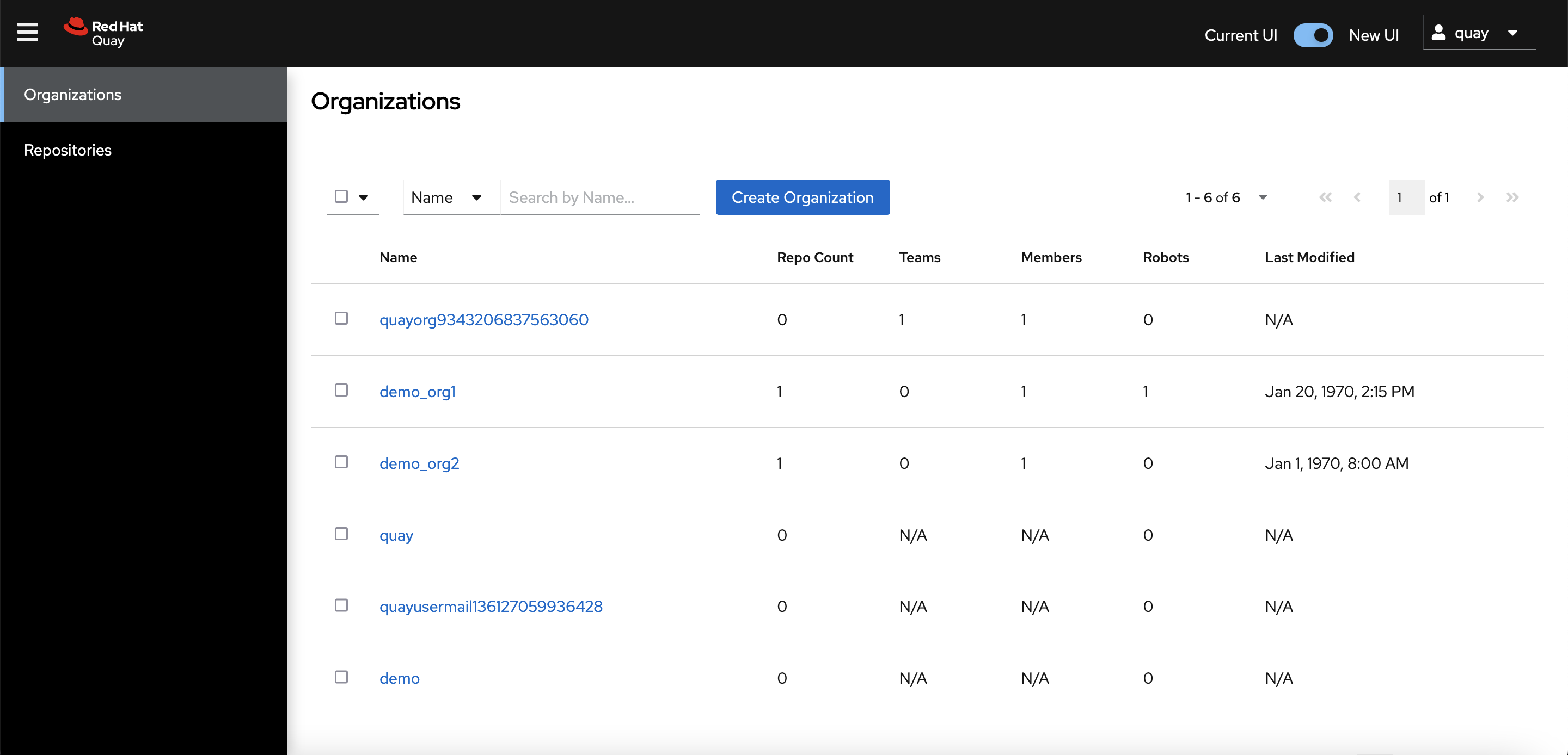 This is an issue of Quay 3.8.0, after enabled "FEATURE_SUPERUSERS_FULL_ACCESS: True", Quay Superuser can view organization created by other normal user, but can't see the image repository, see the following screenshots, here "demo" is normal quay users, and "demo_org1" and "demo_org2" are organizations created by that normal user.