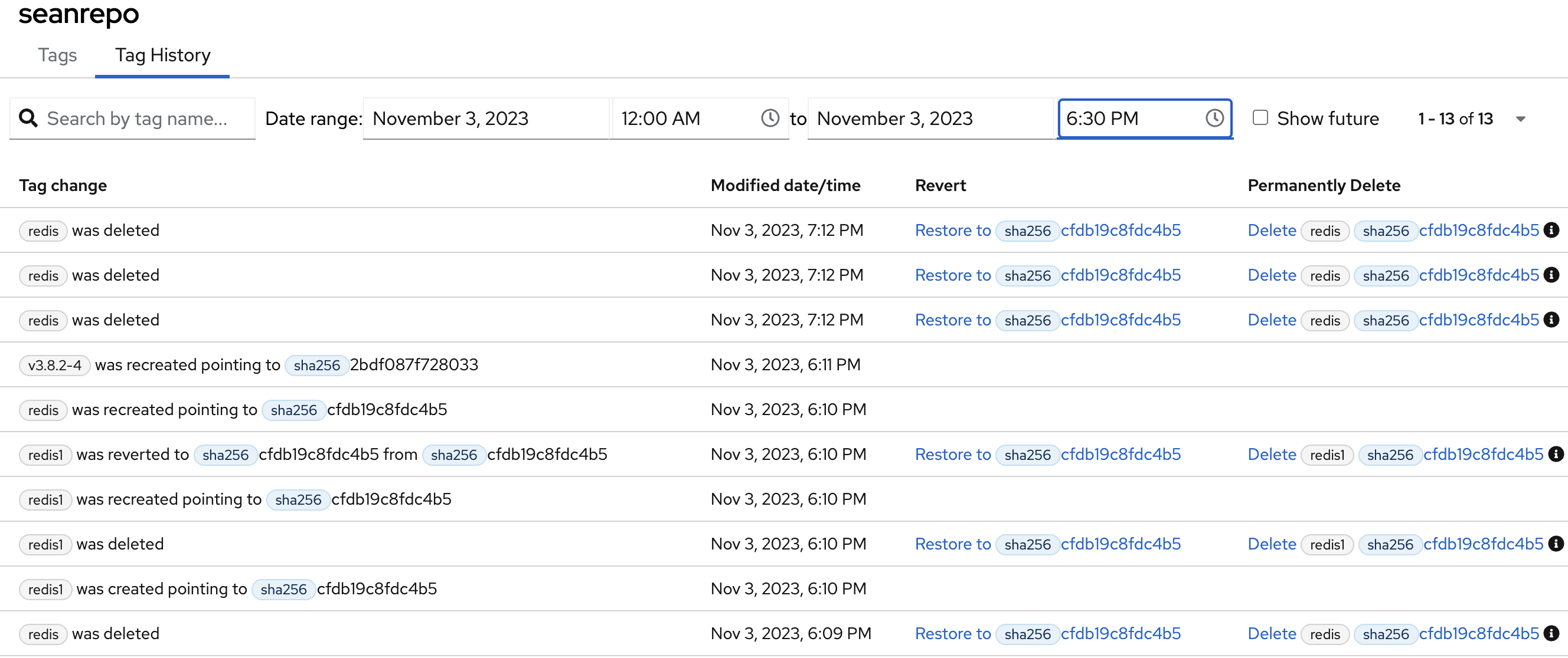 2, Delete the tags to generate event in Tag history page, here it delete by Auto-prune policy, manually delete tag doesn't have this problem.