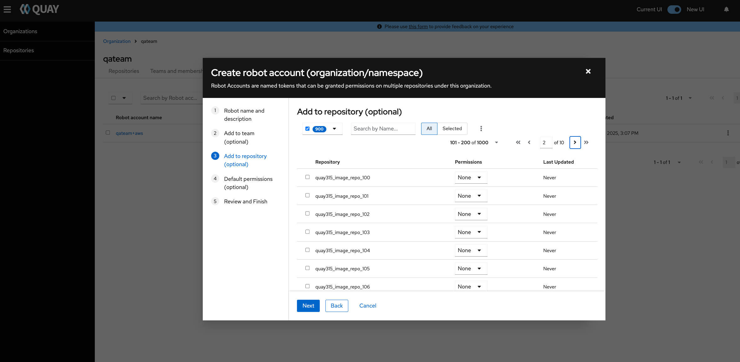 Pagination control buttons in Add To Repository tab of Create Robot Account wizard doesn't work correctly in new UI when check Select All option