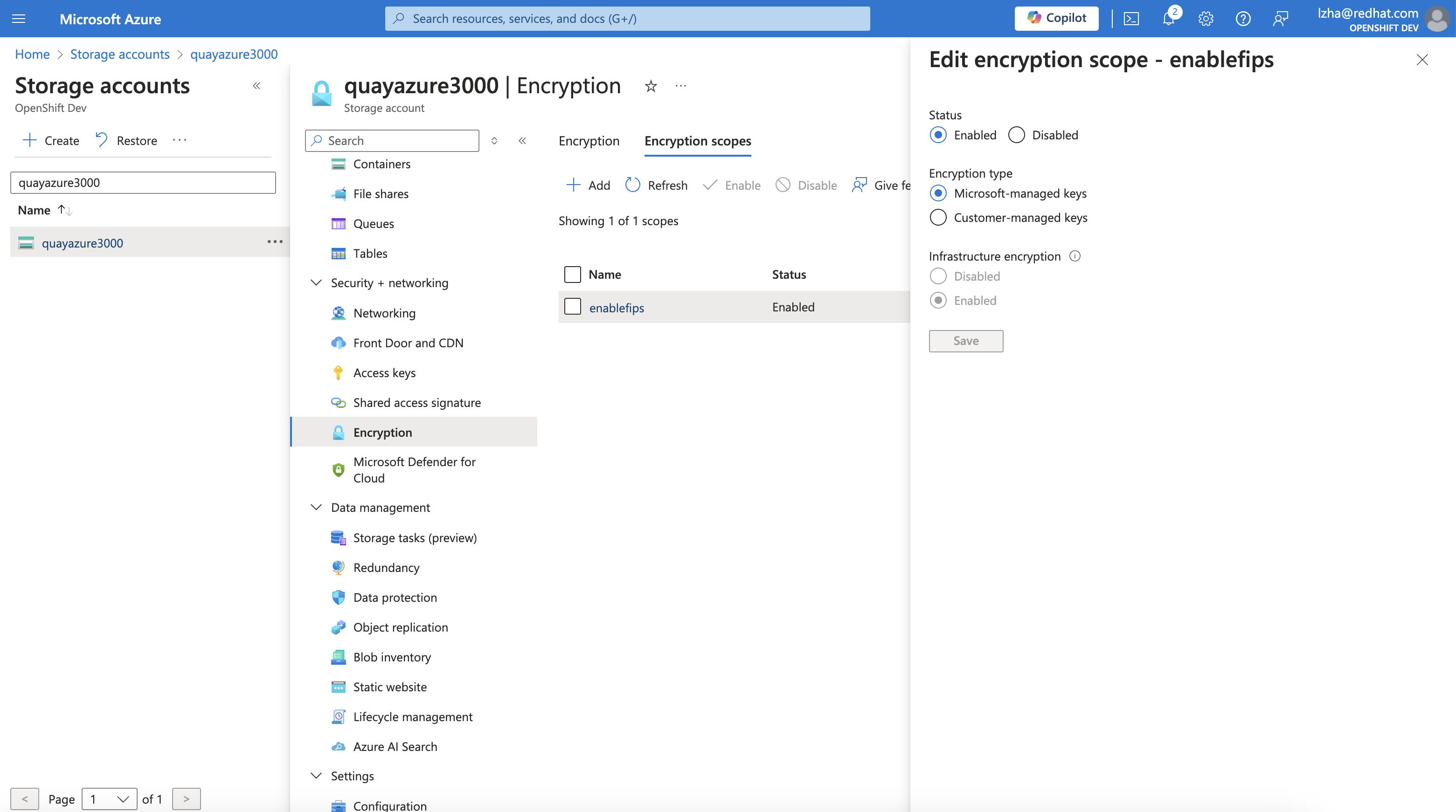 Azure Blob Storage account with encryption enabled: