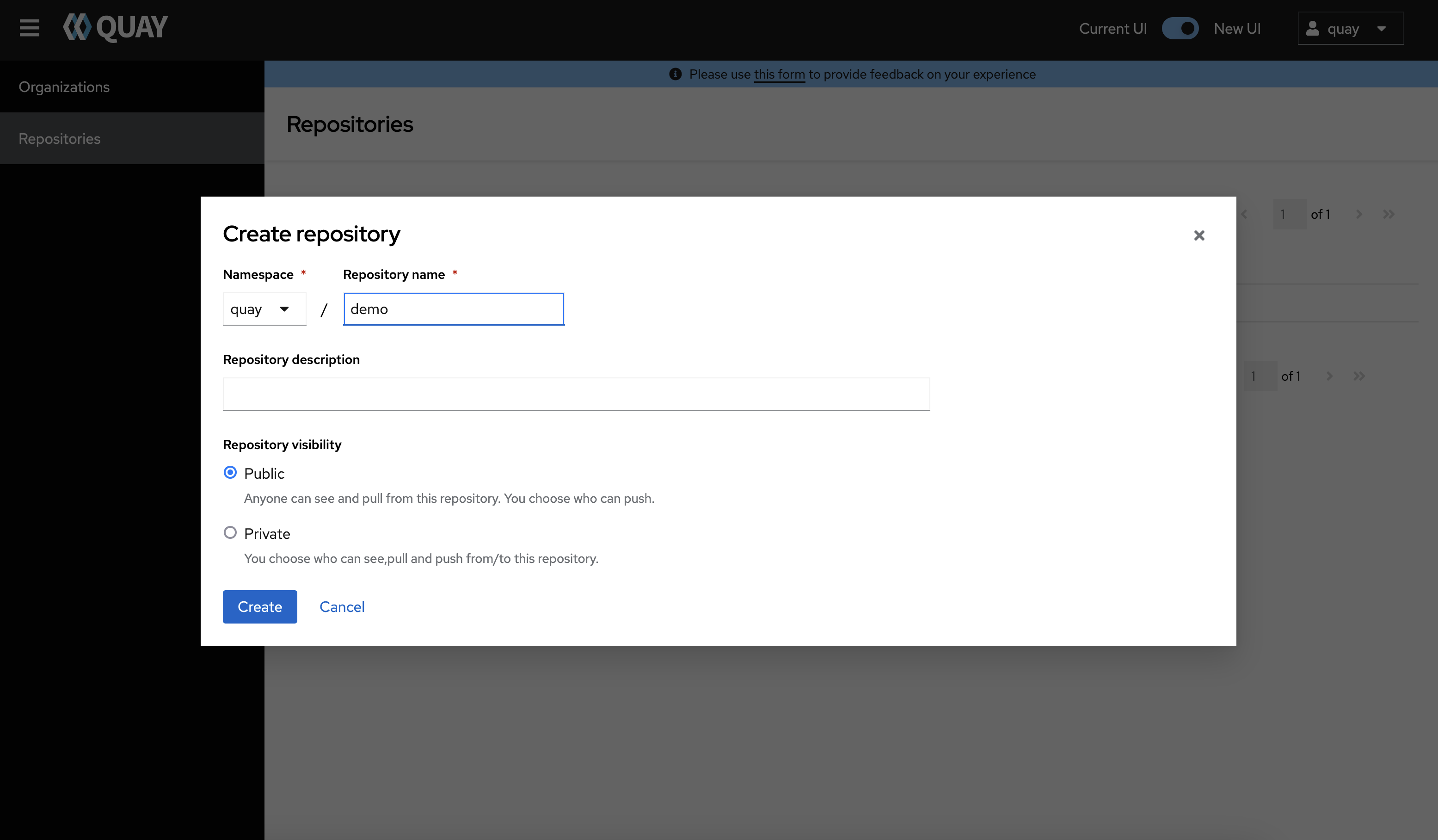 Quay 3.13 new UI doesn't give Customers option to enable/disable Vulnerability Scanning when create new Image repository: