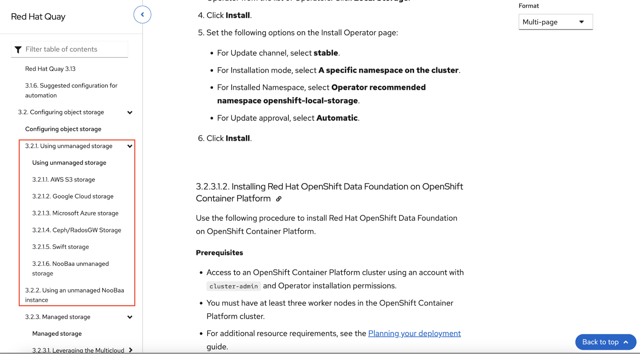 Quay 3.14 Docs should guide Customers how to configure to use unmanaged Storage "AWS CloudFront"