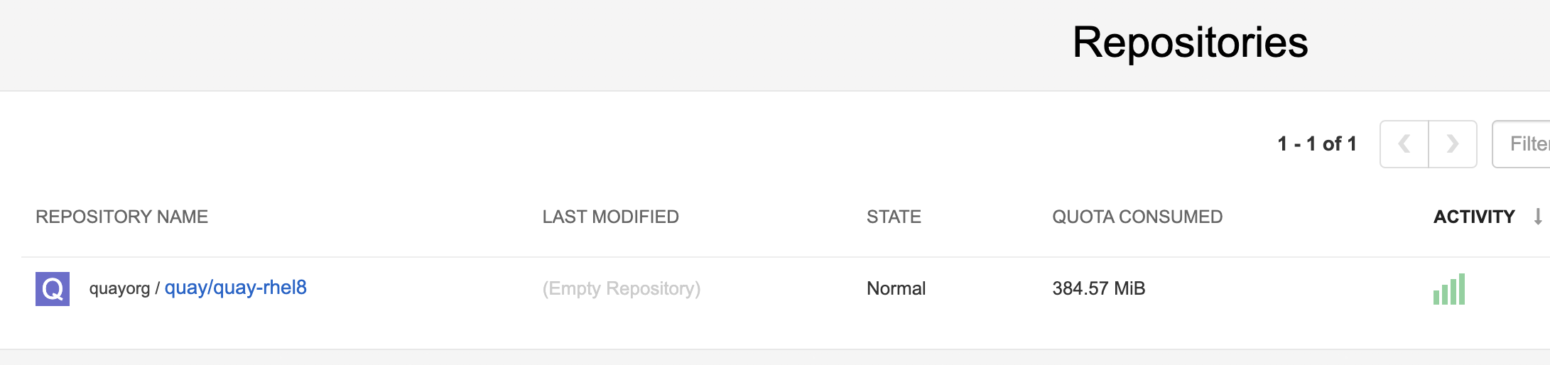 There is no tag in Quay, but from Quota Consumed can see image has been pulled into Quay