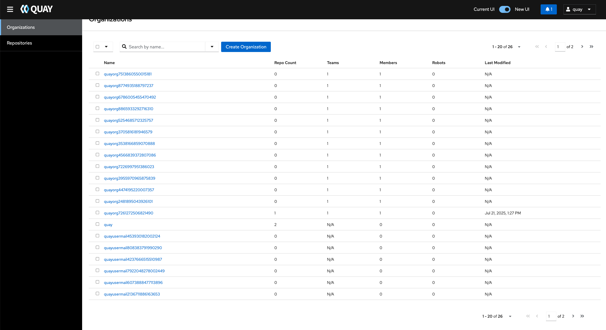 This is an issue found in Quay 3.15.0 new UI, after login Quay new UI Console, find can't see the Quay Version and Quay Documents link, that means in Quay 3.16.0 the once current UI is removed Quay Customers can't find the Quay Version and Quay Documents link on Quay Console, pls review this issue.