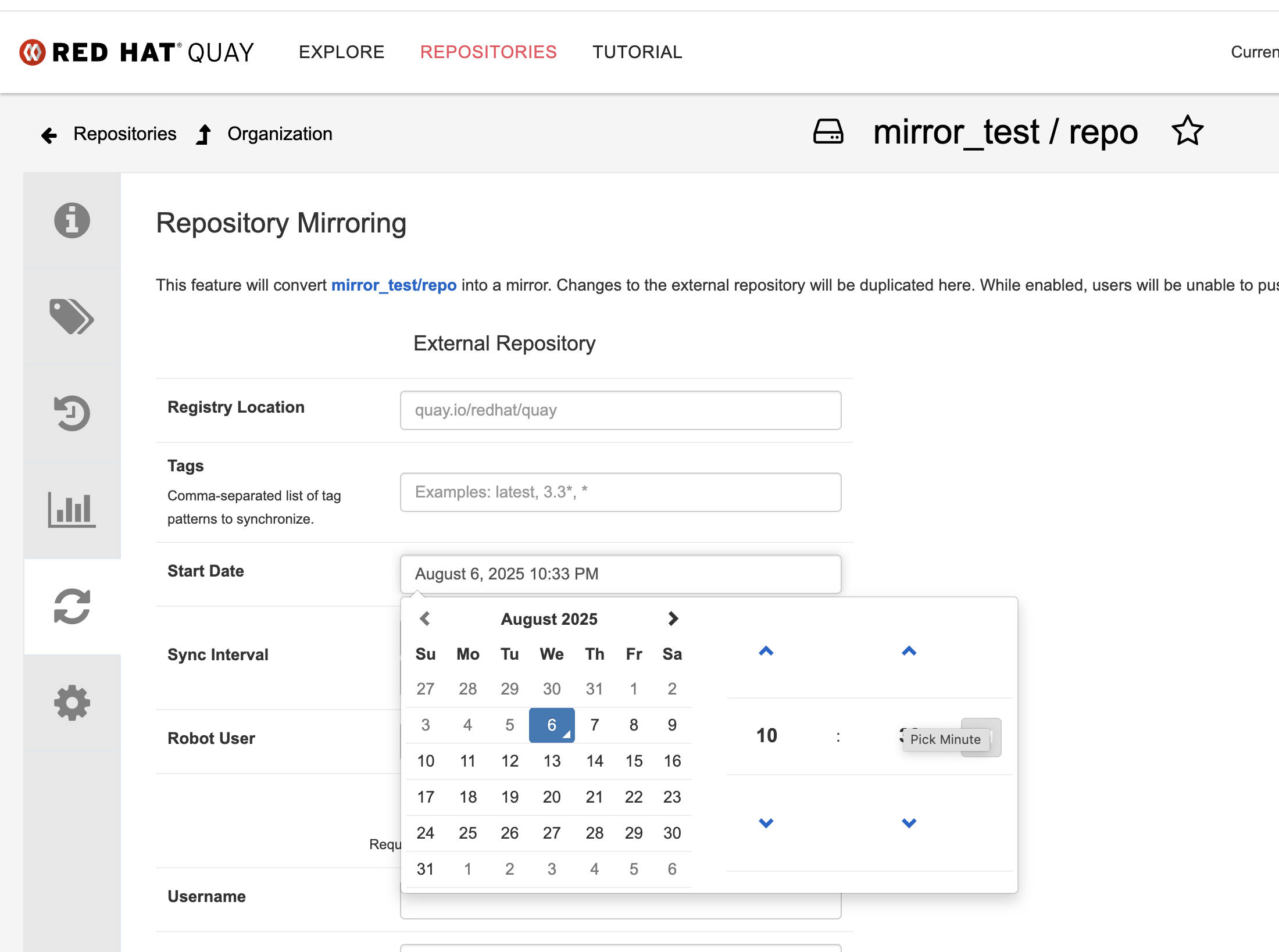 Unable to quickly select hours and minutes in the Start Date field of the new UI Mirroring tab. It can be done in old UI.