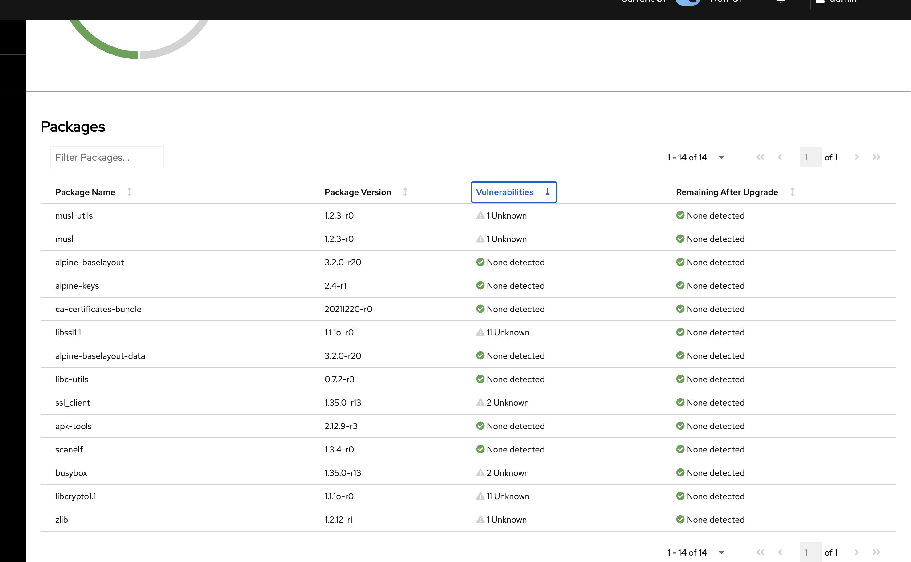 Sorting of Vulnerabilities column in Packages table doesn't work
