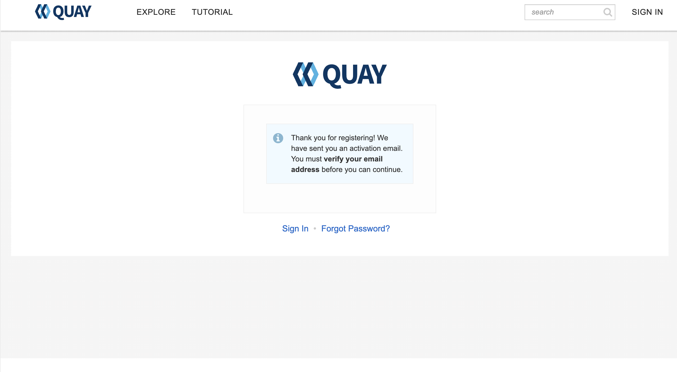 This is an issue found in Quay 3.16.0 new UI login page pre-merge testing, now with email enabled in Quay, on new UI create new Quay user will not ask user to verify the email address, but on current UI the behavior is Quay will ask users to verify the email address, pls review this new UI issue.