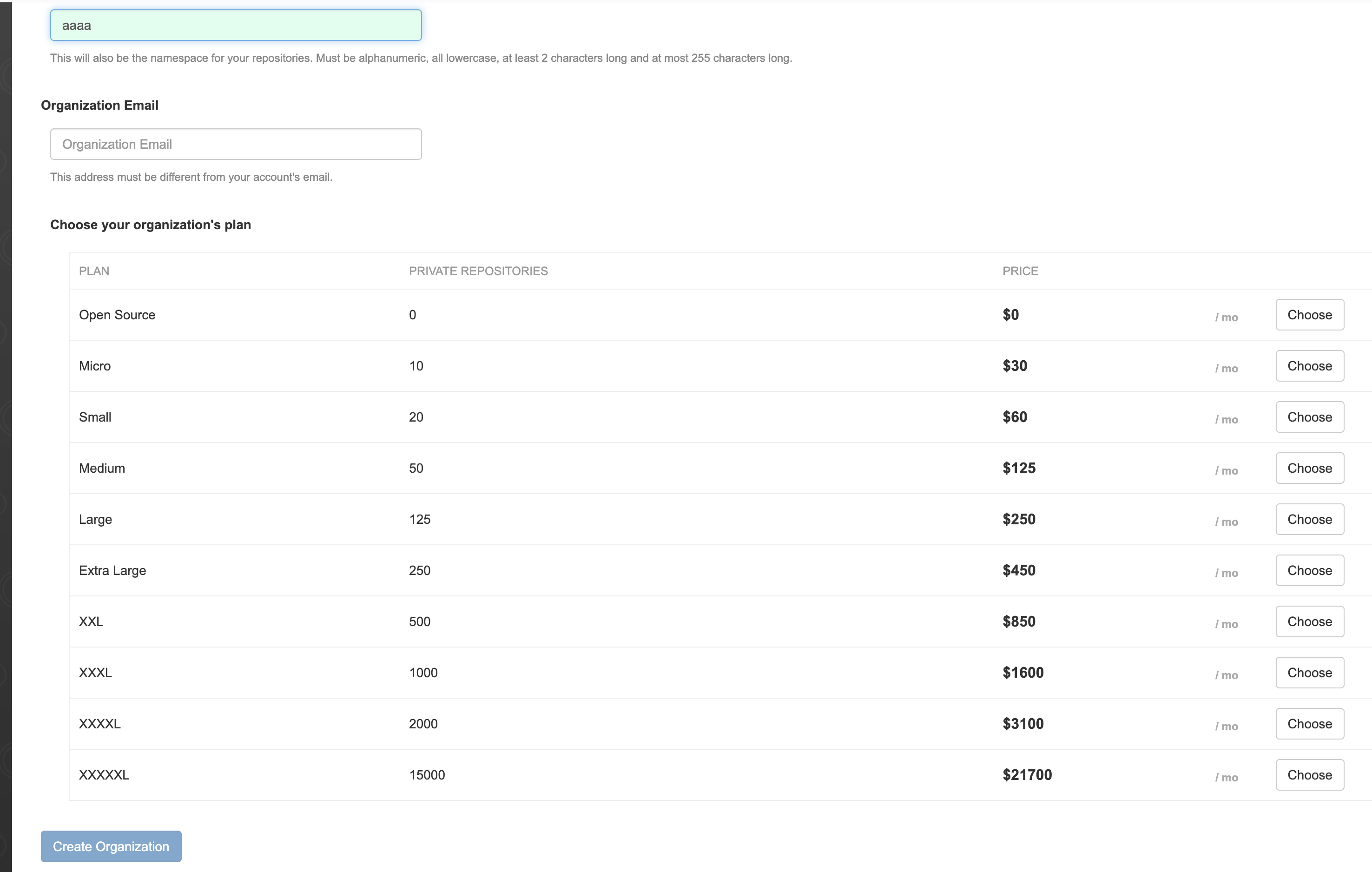 But do not fill in this field, the organization can not be created. There is no alert message why the creation failed at the same time. Everything is silent.