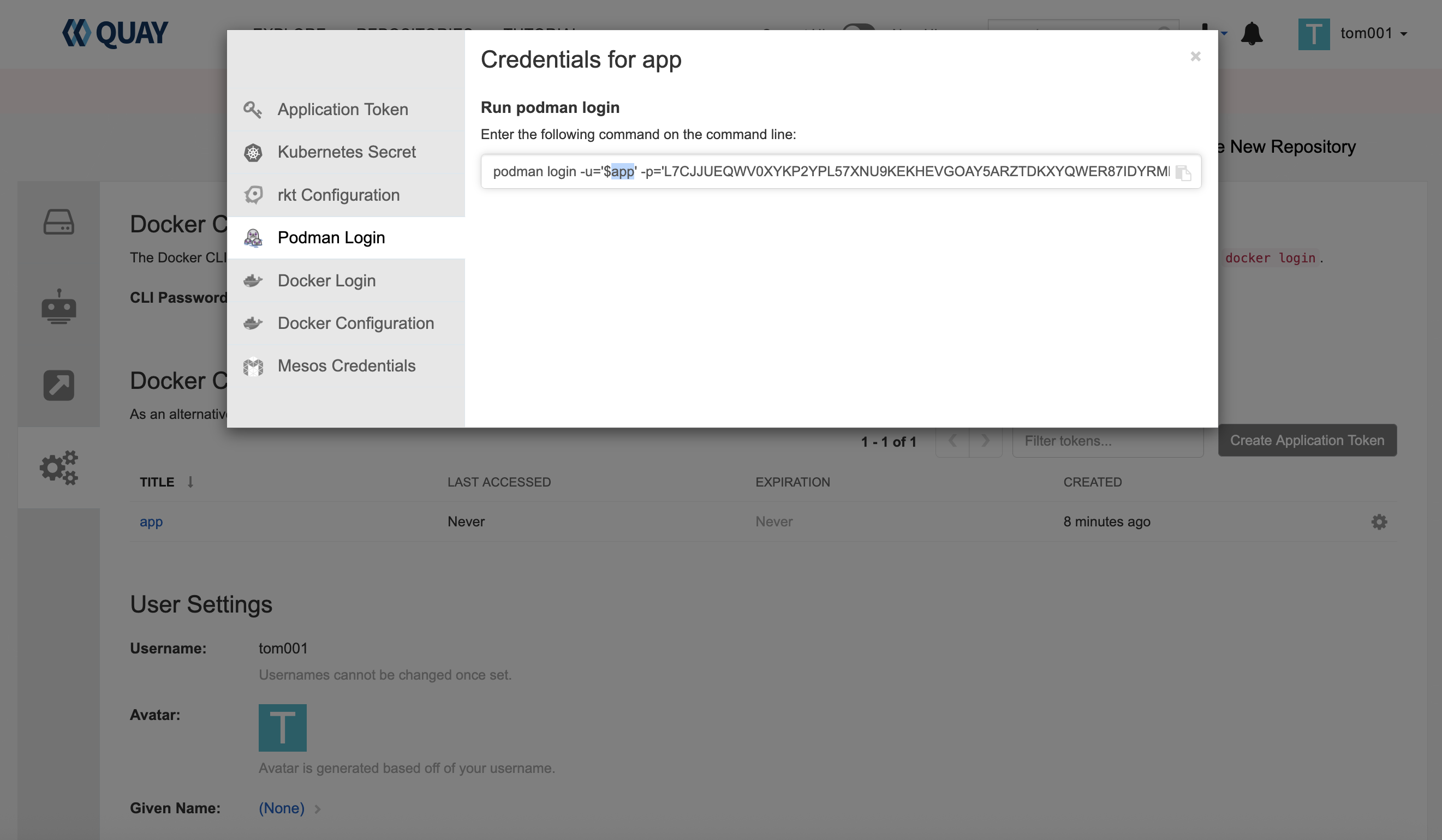 podman login -u='$app' -p='L7CJJUEQWV0XYKP2YPL57XNU9KEKHEVGOAY5ARZTDKXYQWER87IDYRMH76PRD93TO7IFGI6NLTA404ELHUEXJ0SWWE2RFQSS3QE3KPHY0IRKAE9Y9RROM685****' localhost:8080 --tls-verify=false Login Succeeded! podman login -u="tom001" -p="L7CJJUEQWV0XYKP2YPL57XNU9KEKHEVGOAY5ARZTDKXYQWER87IDYRMH76PRD93TO7IFGI6NLTA404ELHUEXJ0SWWE2RFQSS3QE3KPHY0IRKAE9Y9RROM685****" localhost:8080 --tls-verify=false Error: logging into "localhost:8080": invalid username/password
