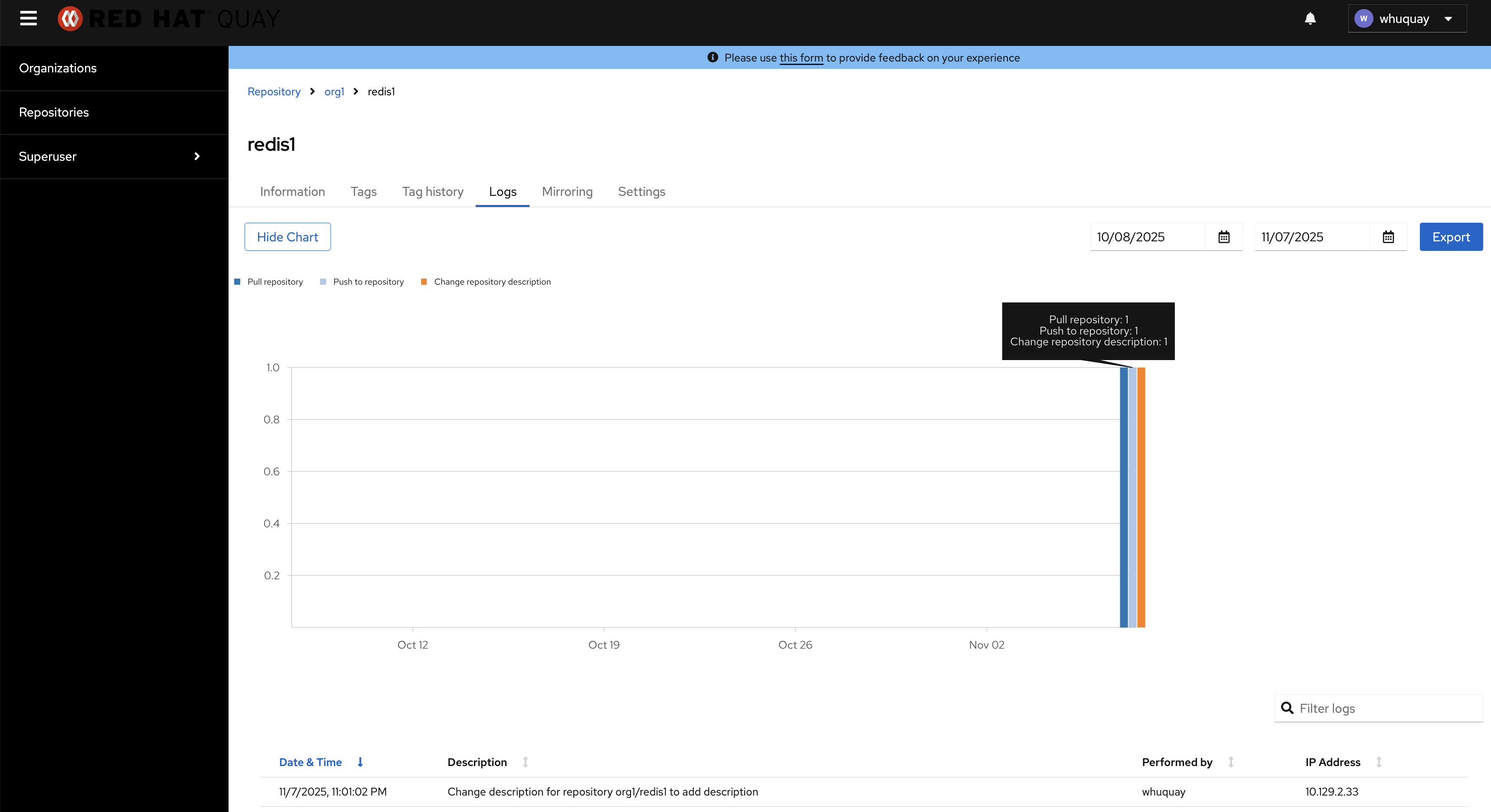 If there are fewer than 3 types of operations, The repository log bar chart cannot display the bars.