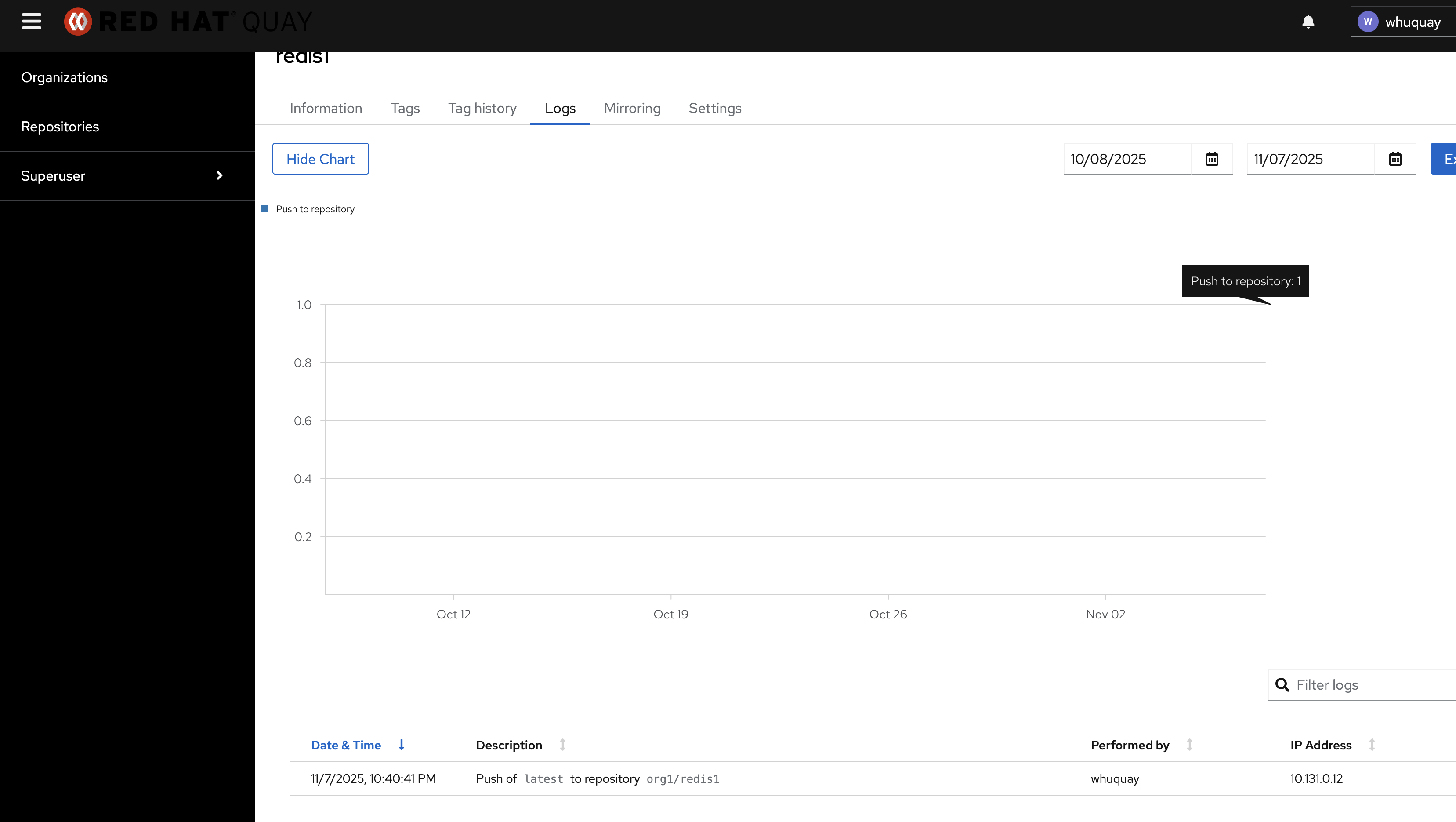 In quay 3.16.0 new UI, the repository log bar chart cannot display the bars If there are fewer than 3 types of operations