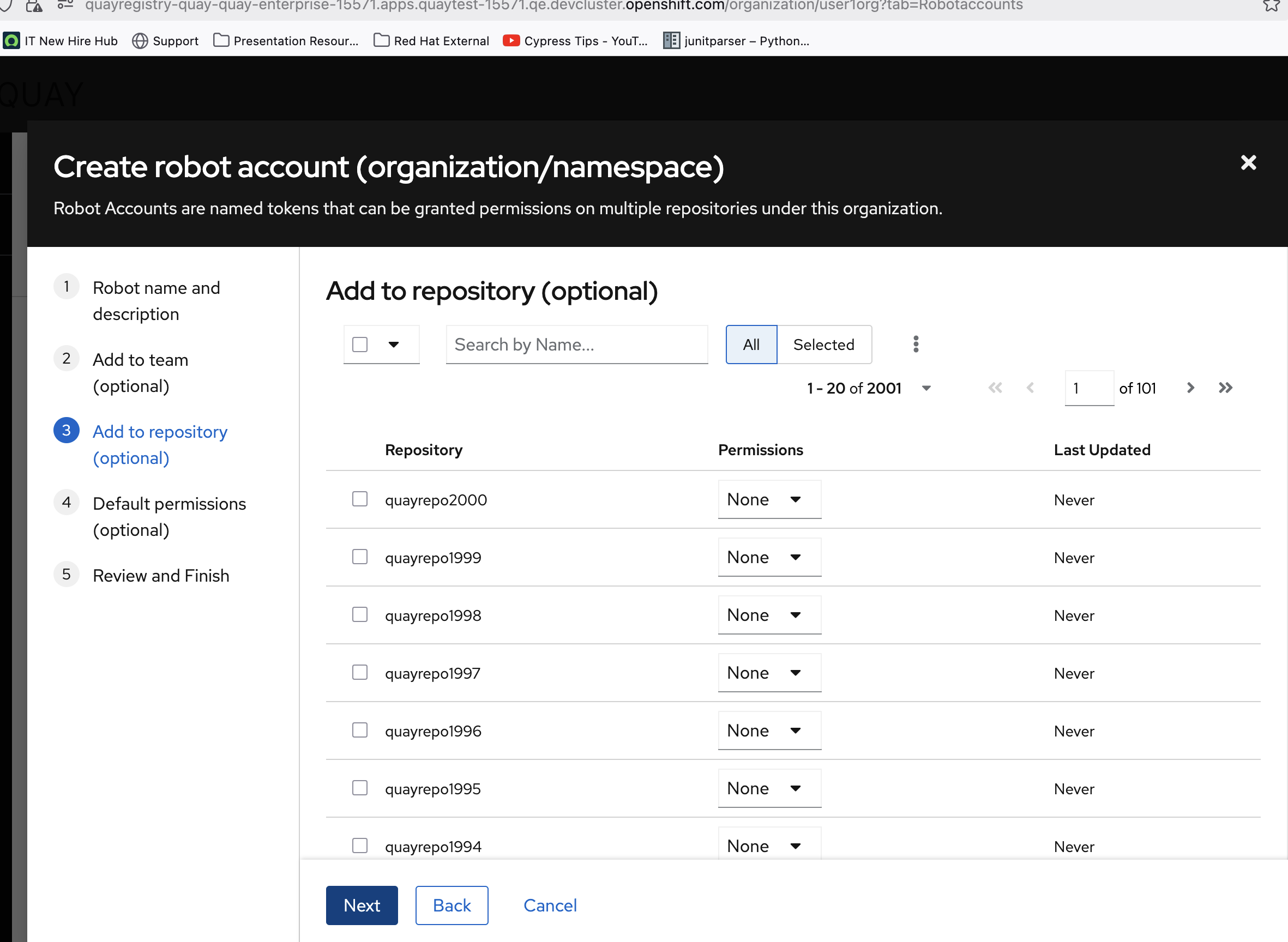 During "Adding Repositories" to Robot account, page redirect to "This site is temporarily unavailable”. this should not 3.16 only issue, looks new ui general issue.