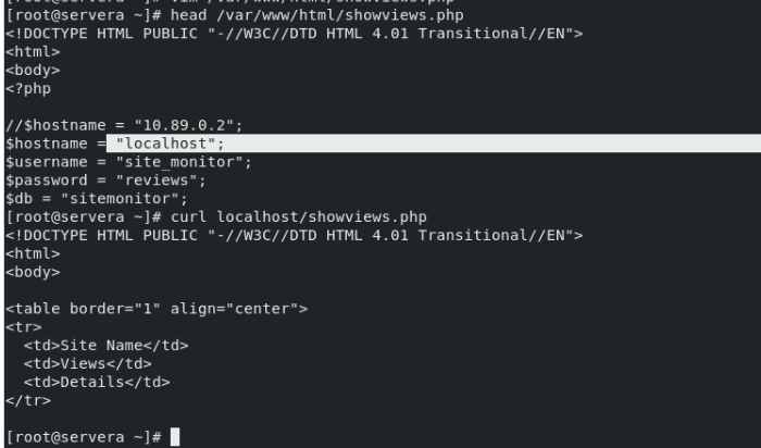 For the exercise to fail while "curling" when the port is not exposed to the localhost, the hostname variable in the HTML code should point to localhost, and not 10.89.0.2, as shown in the attached image.