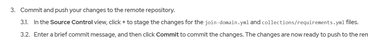 Description: collections/requirements.yml part is never explained in this exercise. I am sure this is to install collection microsoft.ad but should mentioned since it requires to be push back to git. I am copying and pasting the section in question.