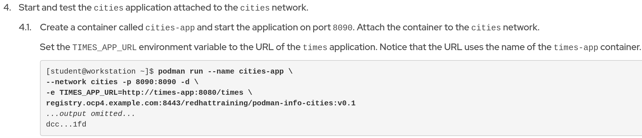 Issue description: step 4.1 - the step suddenly introduces the env variable TIMES_APP_URL that is no where discussed or informed about in the Guided exercise. It seems that the city app is a GO app that uses the env variable but I think learner needs to be informed about this requirement beforehand otherwise the env variable is a puzzle for them