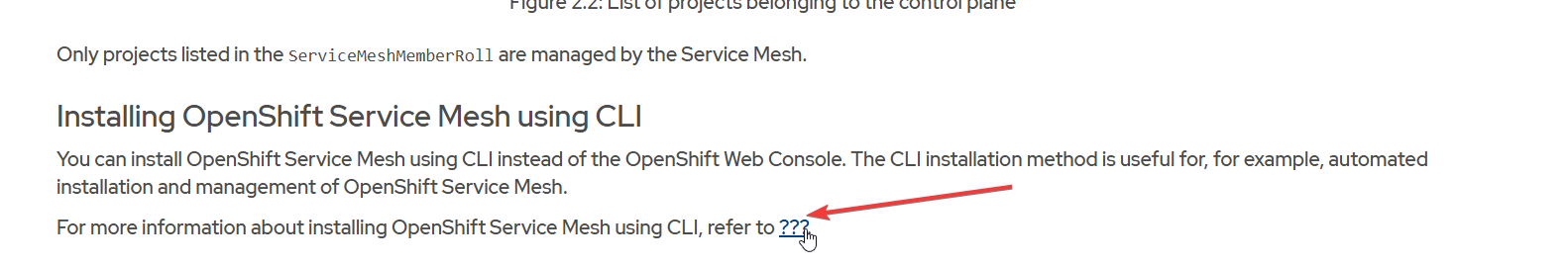 Description: link not working in "Installing OpenShift Service Mesh using CLI"