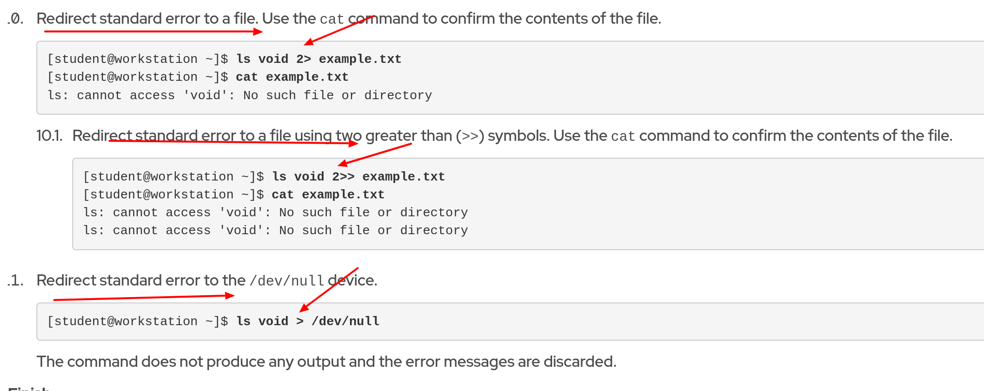 Issue description: step 11 : it should be "ls void 2> /dev/null "