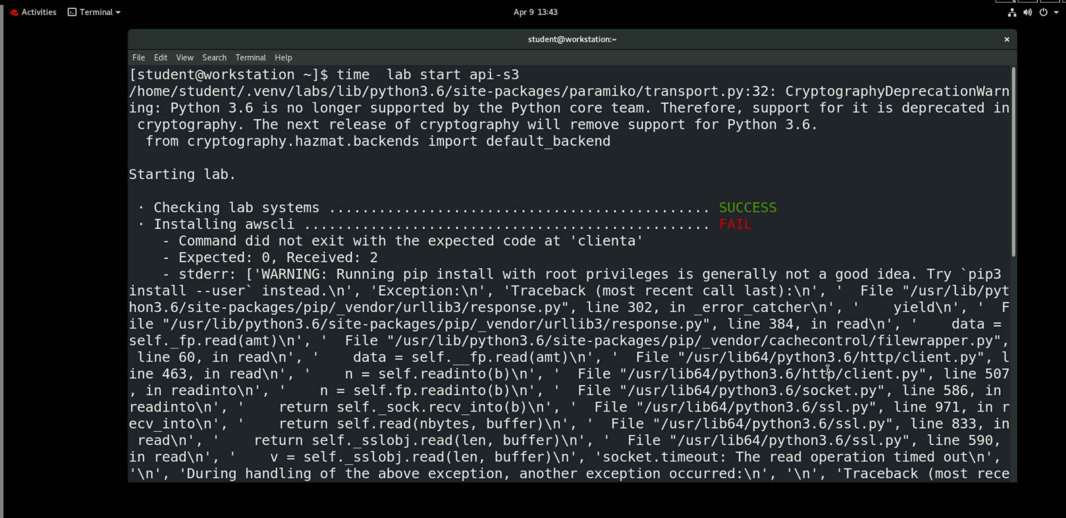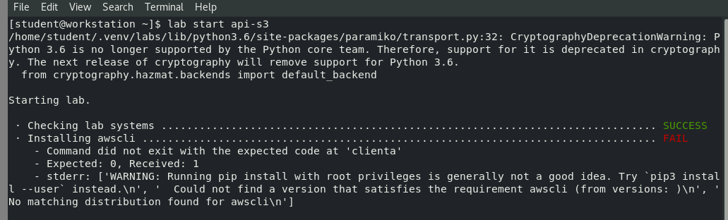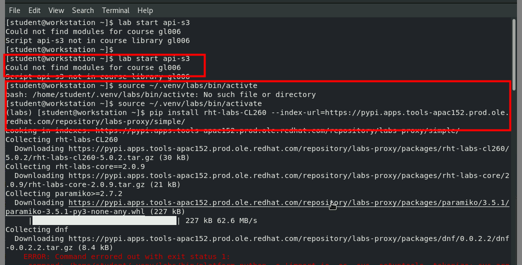 Lab script failing on China ROL . User created fresh lab and got new error.