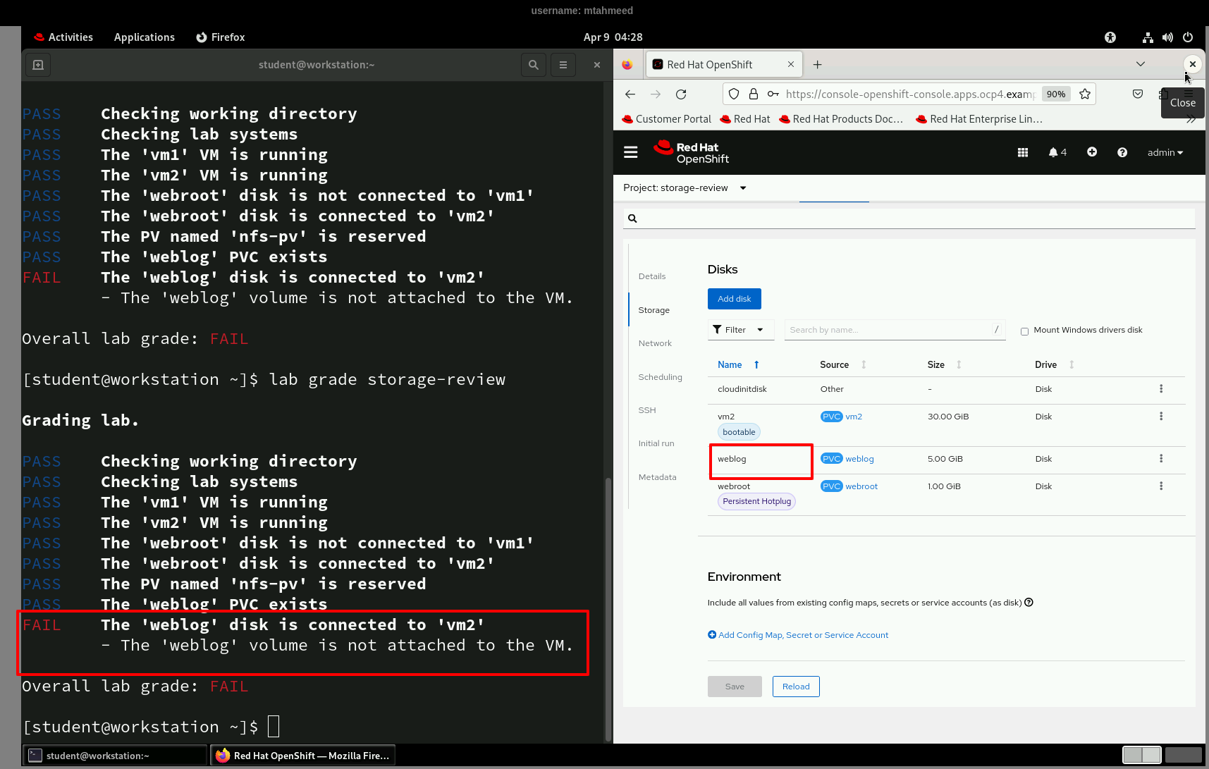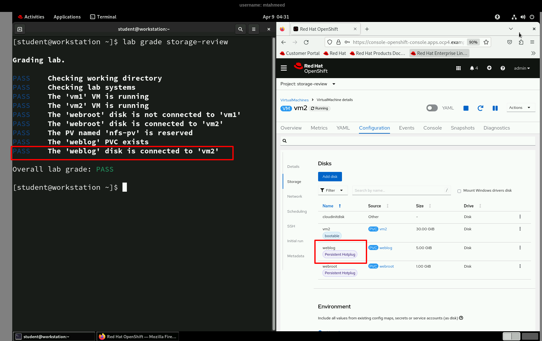 Lab script for this lab exercise only grades PASS when the disk is attached at step 2 and Step 5, when the VM2 is running as a (Persistent Hotplug), and when we attach the disk after stopping the VM2, which is to accomplish the same task, the lab grade script fails. So the concern is why the lab grade fails when there is no specification in the Lab exercise, which the type of attachments that have to be made. (whether Persistent Hotplug or no label)