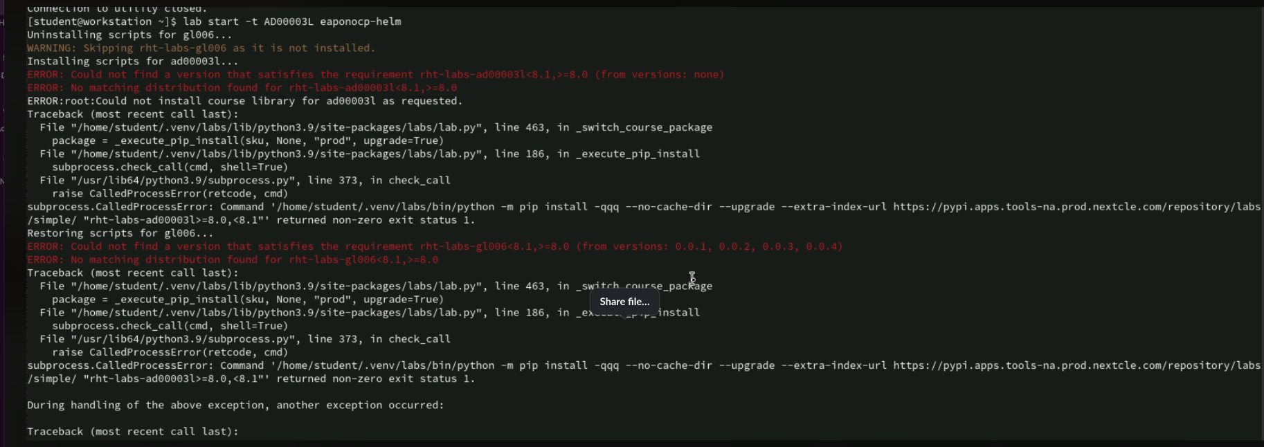The lab start script is not working for the AD258 course, Chapter 9, sections 4 and 5.
