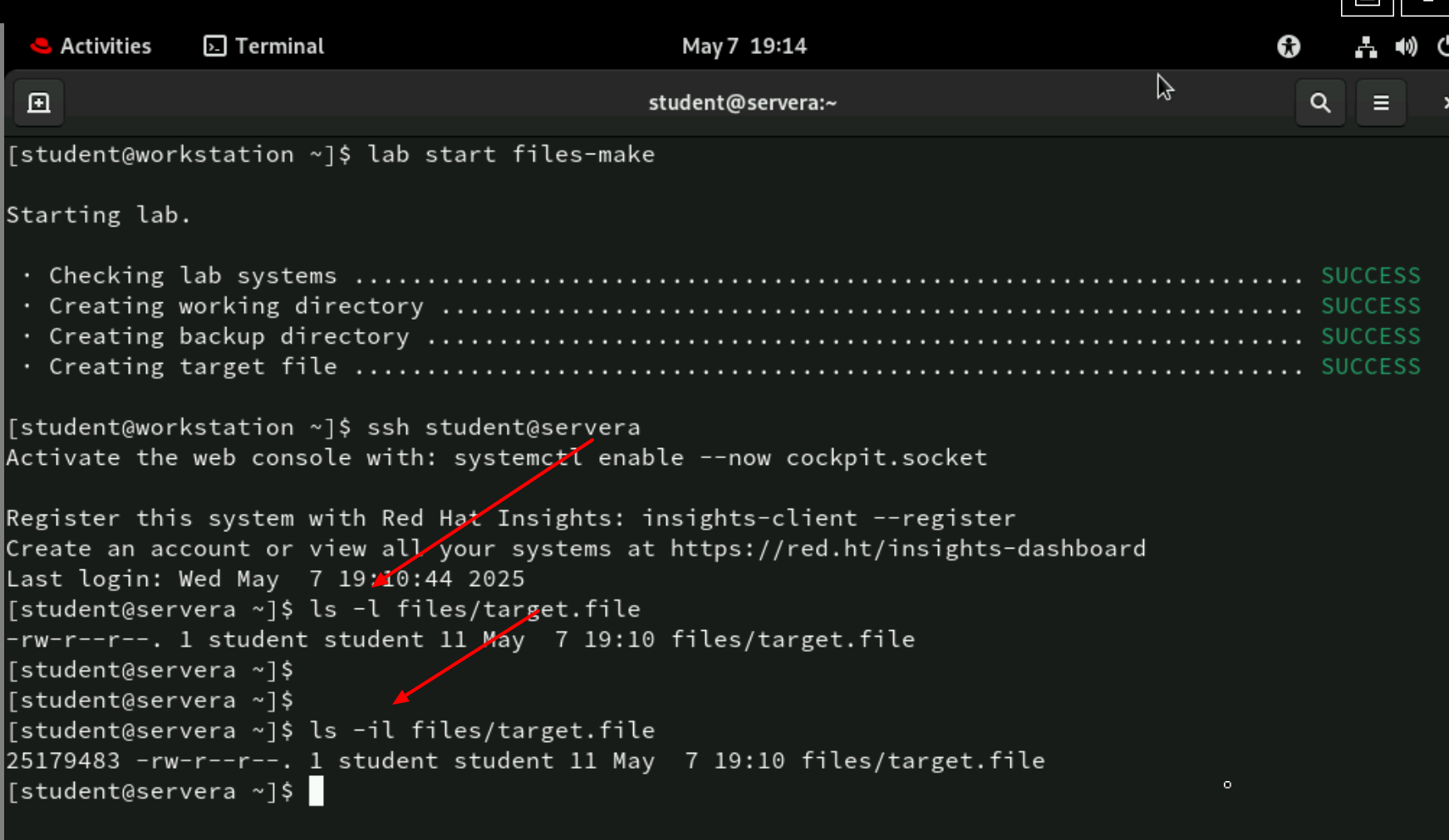 RH124v9.3 ch03s08 : step 2.1 & 2.3 needs correction - should include -i in the command