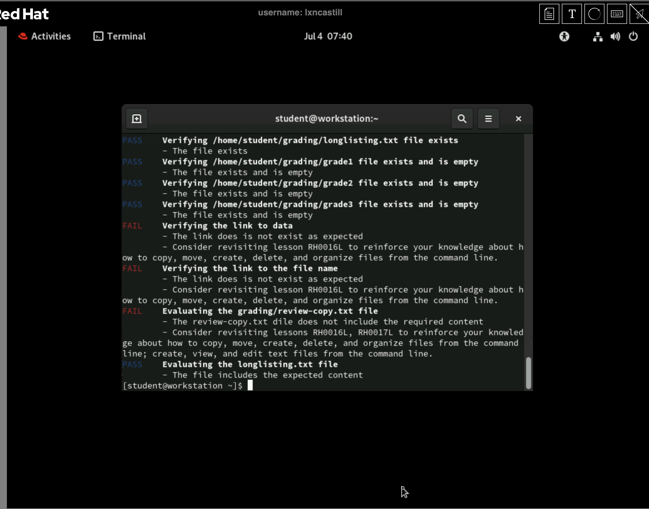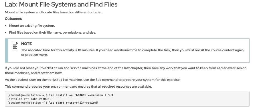and continue with the 'lab start rhcsa-rh124-review1' and rest of the steps.