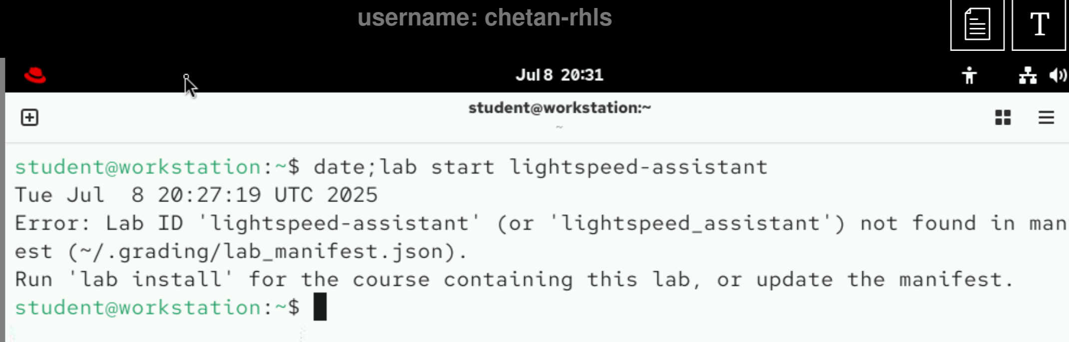 ch03s02 : lab start lightspeed-assistant fails with error :