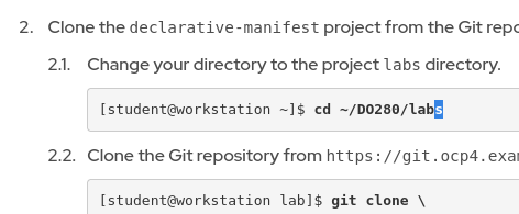 In step 2.1. you are directed to use the folder `~/DO280/labs`: