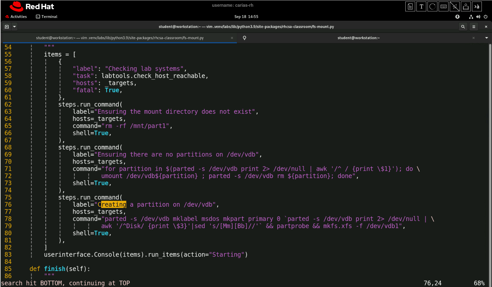 RH124 9.3 ch13s04: lab start fails to create partition on vdb