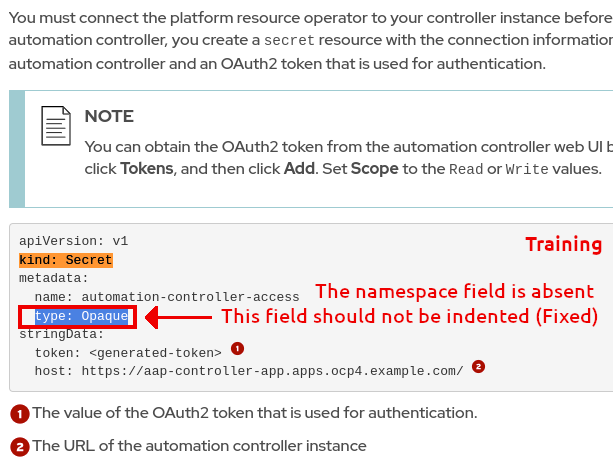DO336-4.16: DO0007L: ch01s05: architecture-operator: The Secret and JobTemplate are missing the namespace they need to be created in