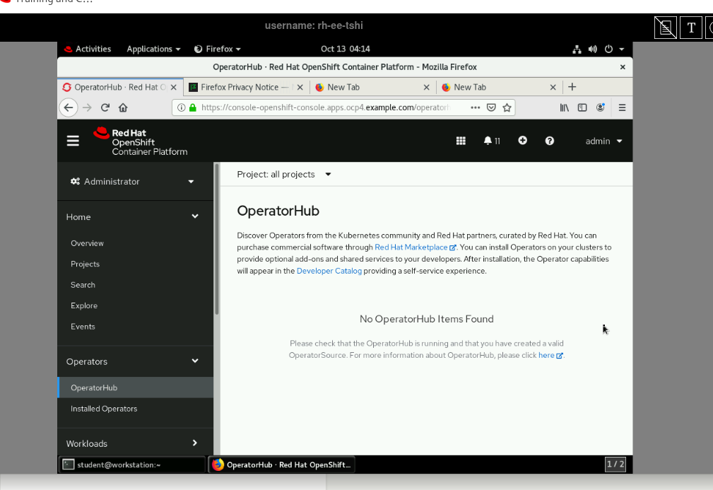 Open https://console-openshift-console.apps.ocp4.example.com/ and Login as admin