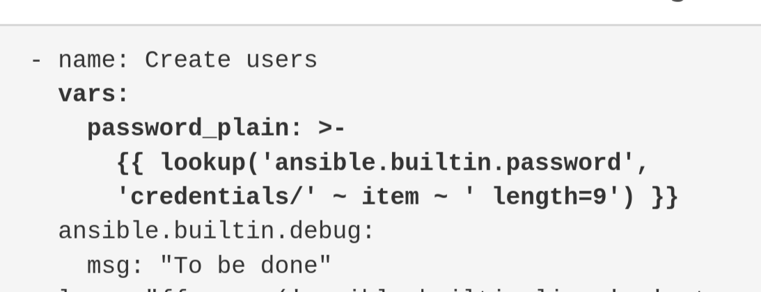 I understand that this command writes plaintext passwords under the credentials/ directory on the Ansible control node. Should not we teach here about vaults instead of storing passwords in plain text.