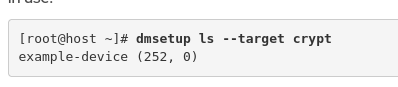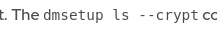 'change 'dmsetup ls --crypt' to 'dmsetup ls --target crypt'