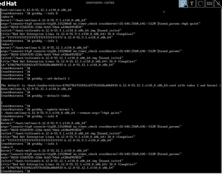 When we set-default entry back to 1 with the --remove-args="rhgb quiet" parameter, the "rhgb quiet" argument no longer applies for 0 either, it seems like it's automatically removed from all fields.