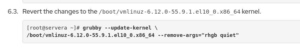 | Section title: | Guided Exercise: Manage the Boot Loader and Kernel Command Line |
