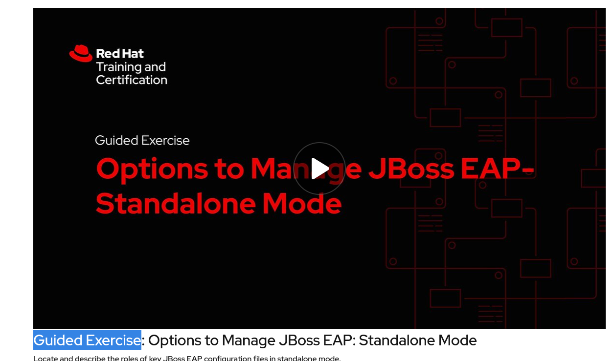 "Guided Exercise: Options to Manage JBoss EAP: Standalone Mode" is currently the same one seen in