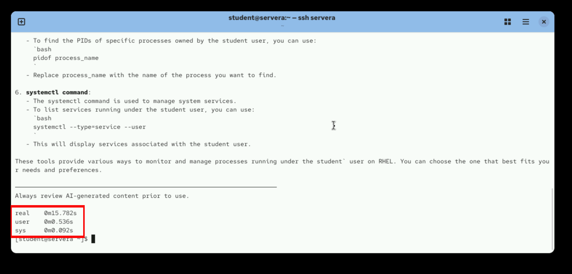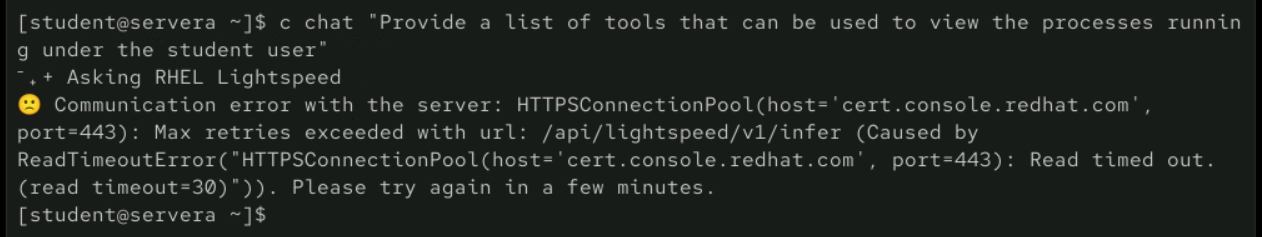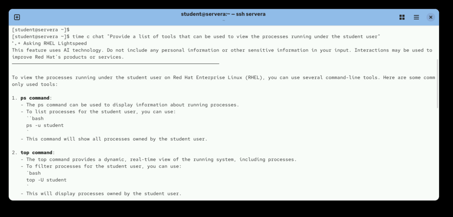 Section Title:     Guided Exercise: Ask Questions and Evaluate Answers from the Command-line Assistant