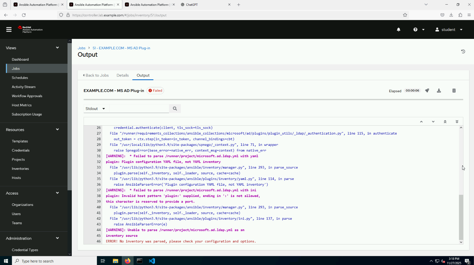 I would like to report an issue encountered during the execution of the Guided Exercise: Generating Dynamic Inventories from Active Directory in the course DO417,
