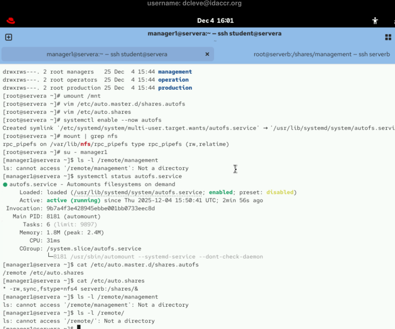 RH134v10.0 :Ch15s05 : error at step 4.2 : ls -l /remote/management : not a directory