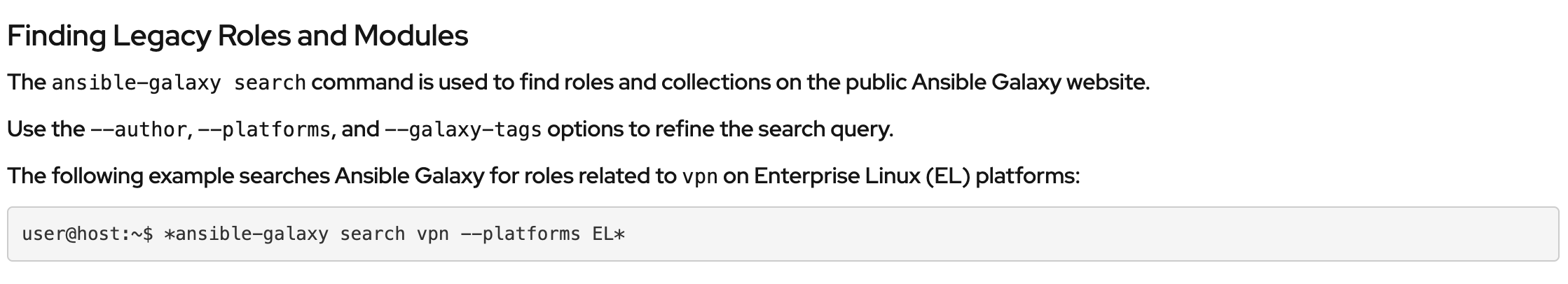 Under Title 'Finding Legacy Roles and Modules' command is added with *  as given in attached picture