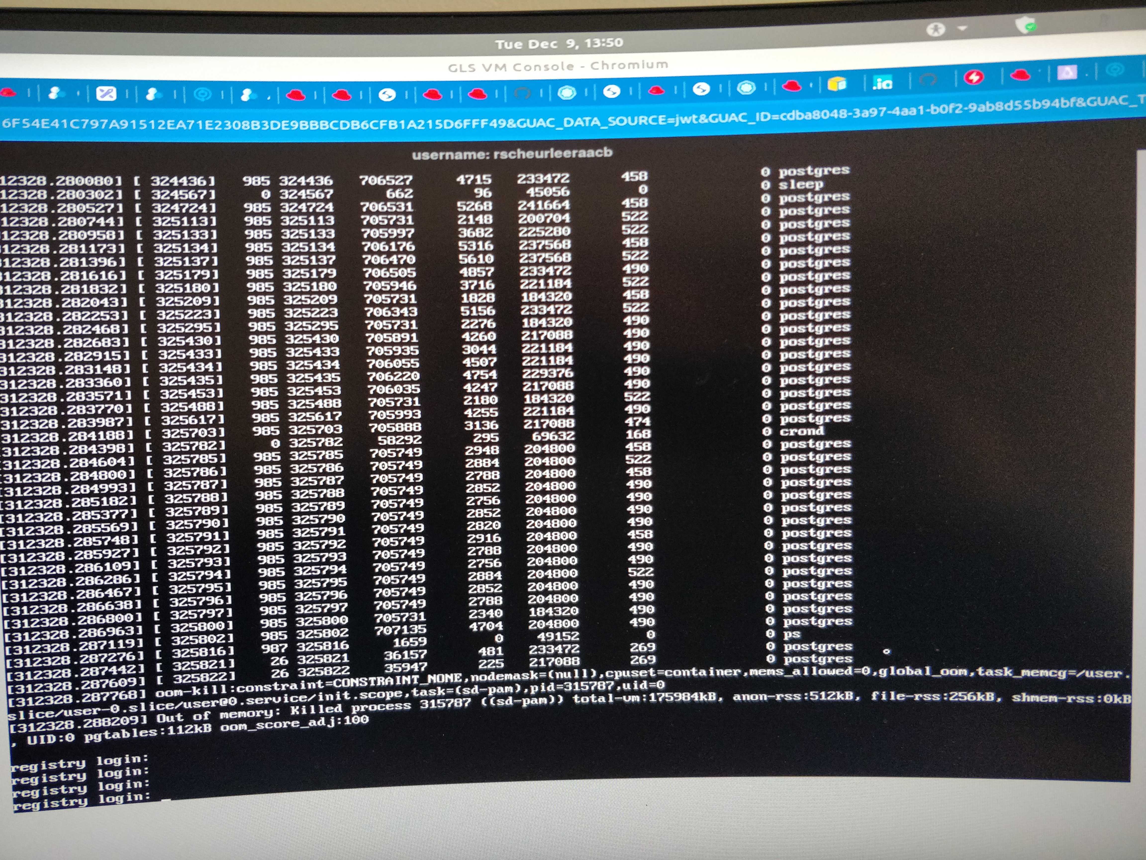 During the DO288 V4.18 course with offering ID 85874496, all learners are experiencing slow performance on the Openshift Console. Investigation shows that the Registry VM is experiencing memory saturation, and the kernel is killing processes due to OOM events.